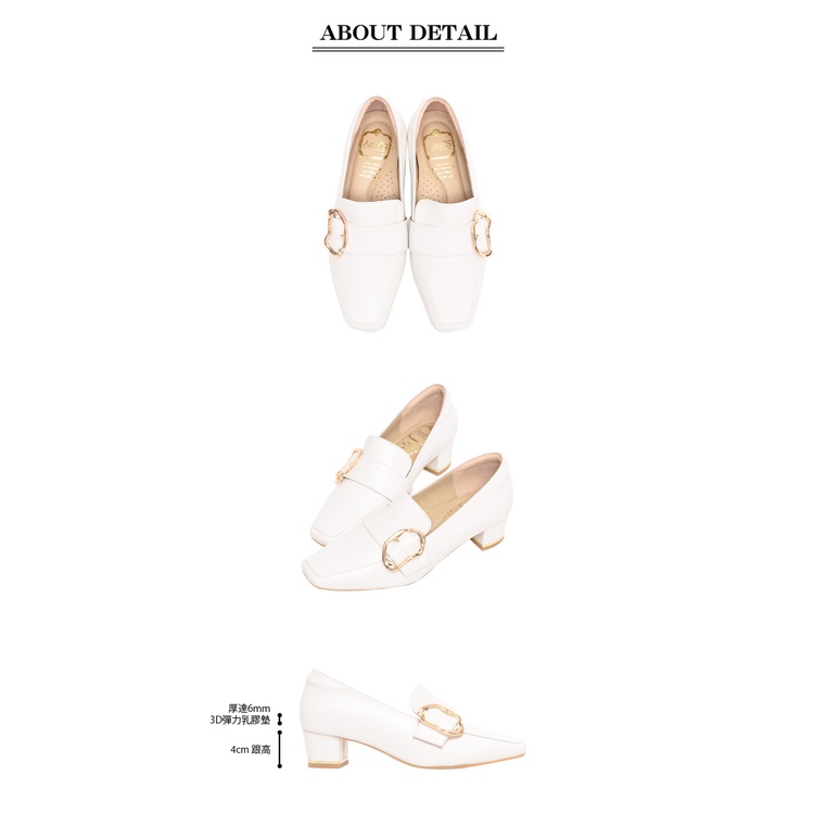 Ann’S超柔軟綿羊皮-達利軟時鐘金屬顯瘦小方頭低跟樂福鞋-4cm-白