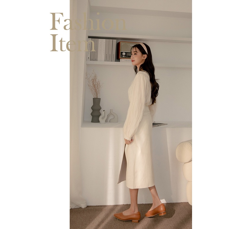 Ann’S柔軟觸感-綿羊皮全真皮夾心金跟平底尖頭鞋-棕