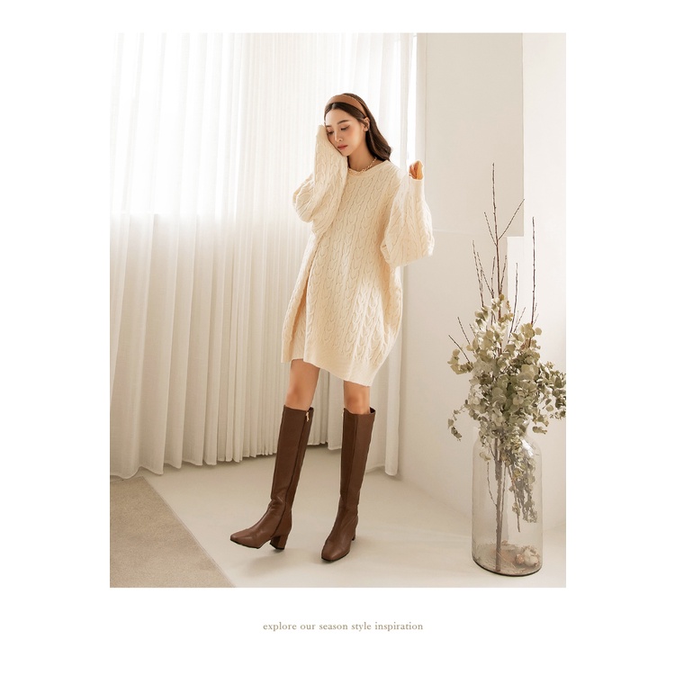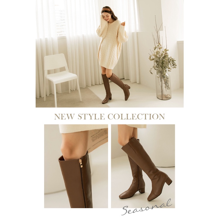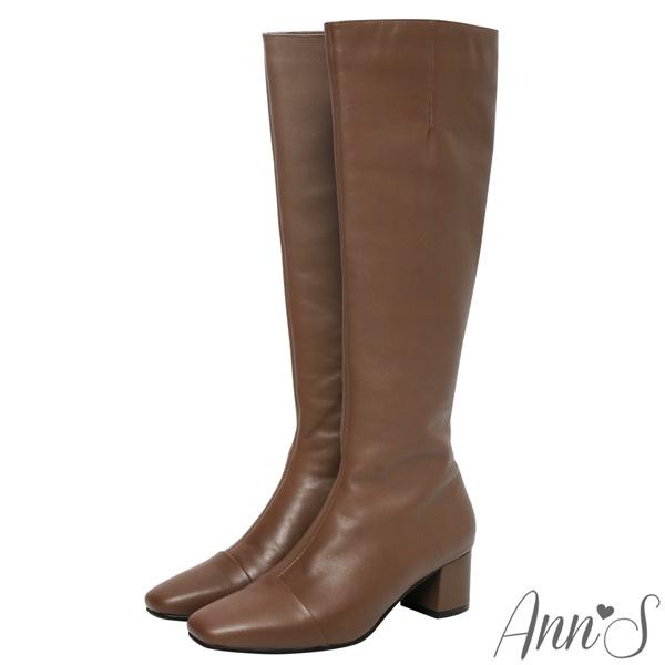 Ann’S優雅名媛收藏-全真皮顯瘦粗跟及膝長靴5cm-棕(版型偏小)