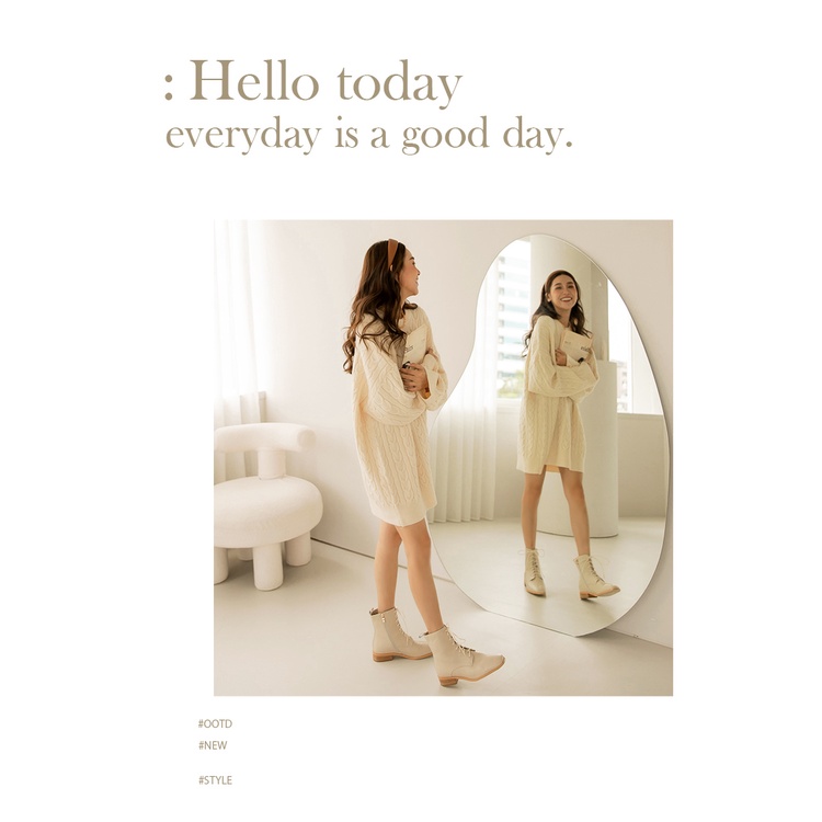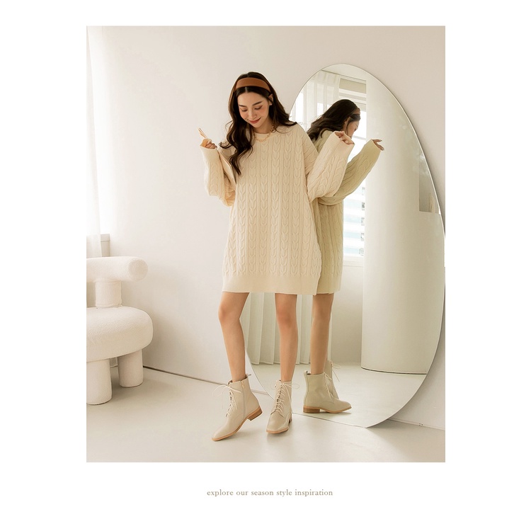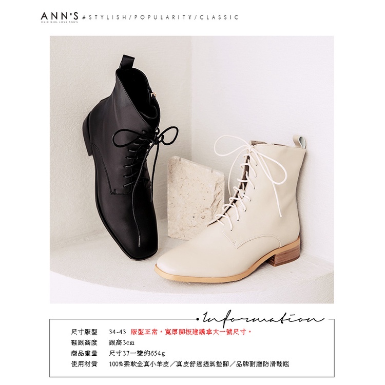 Ann’S高個子女孩看這裡-經典綁帶造型全真皮小羊皮平底短靴-米白