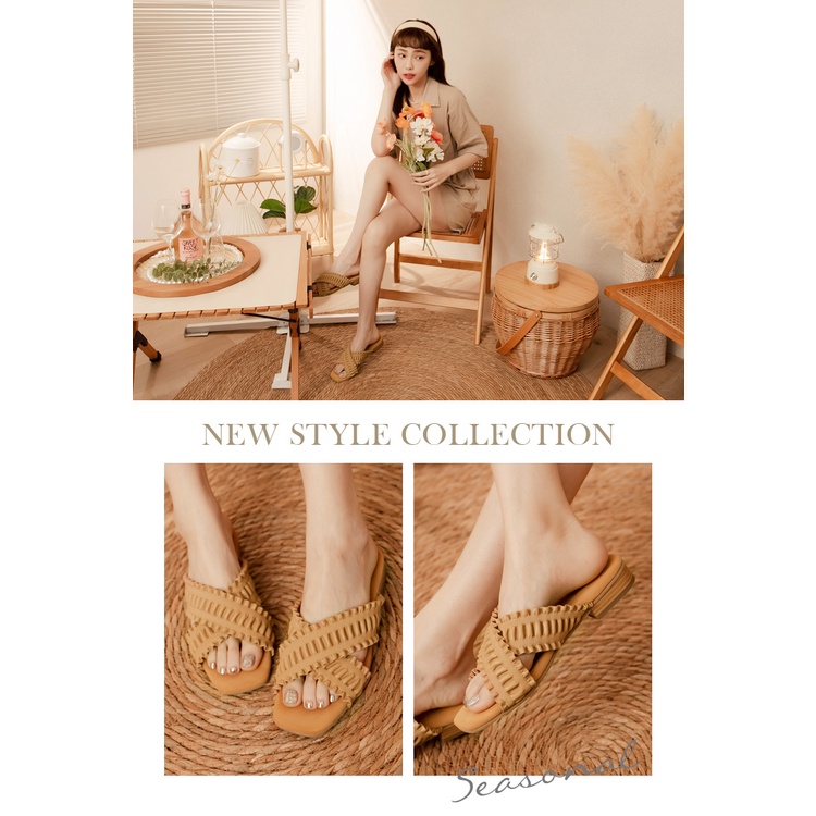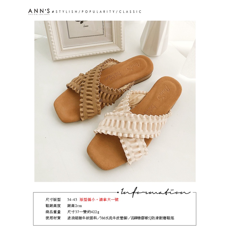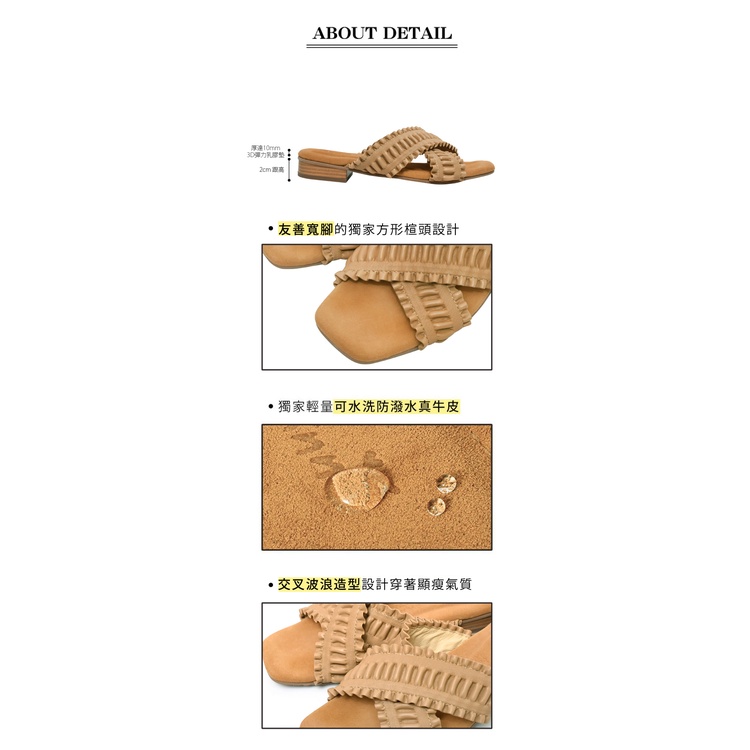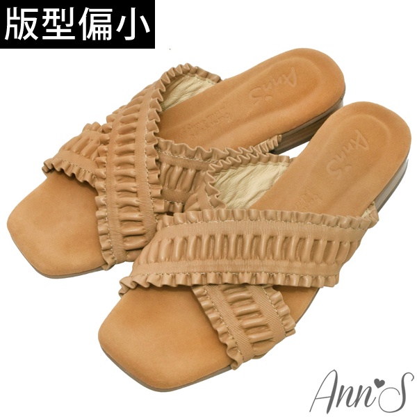 Ann’S水洗牛皮-交叉小波浪木紋跟方頭涼拖鞋-咖(版型偏小)