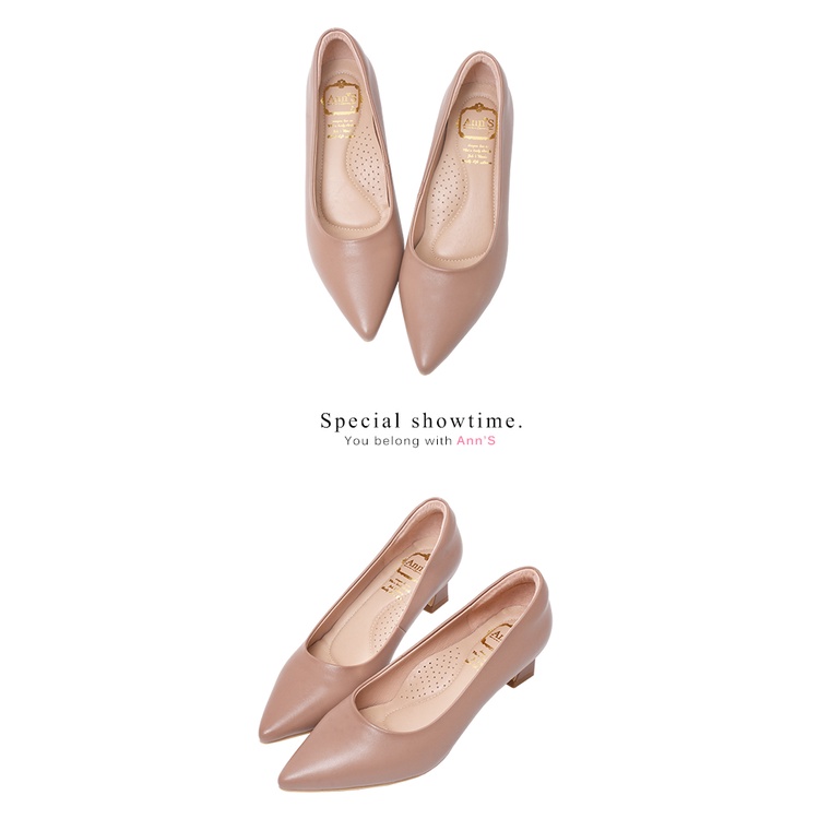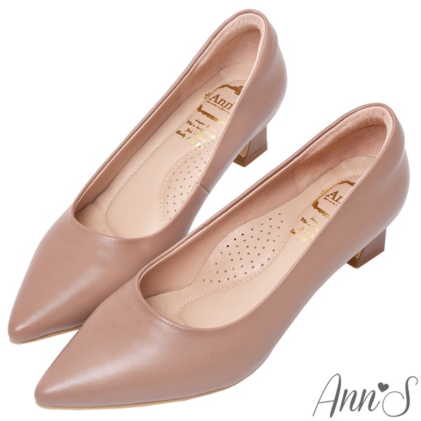 Ann’S平衡負擔-頂級綿羊皮性感尖頭粗跟包鞋4.5cm-棕