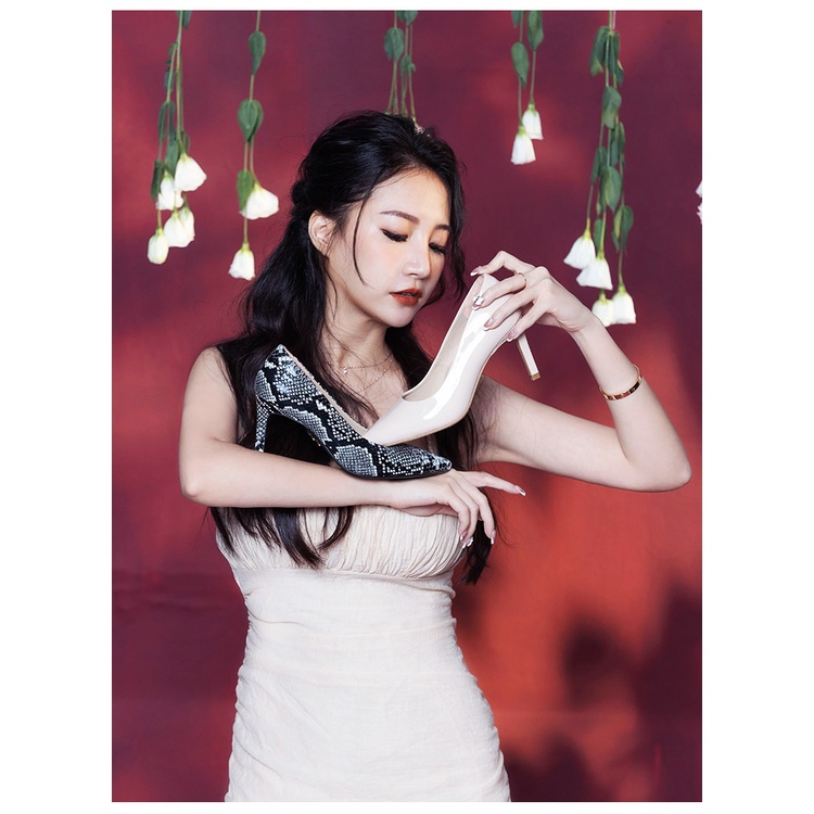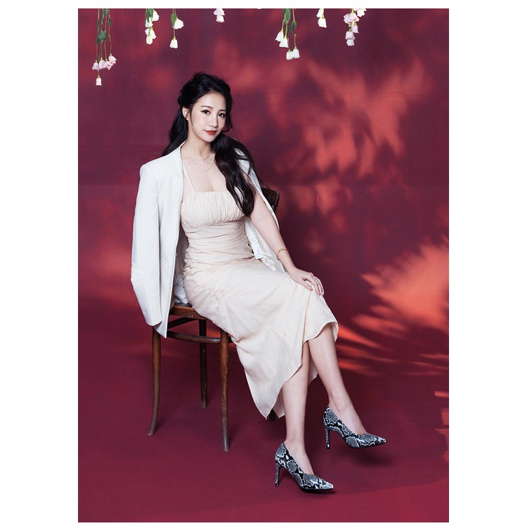 ANNSTAR林采緹聯名-性感尖頭直跟高跟鞋7.5cm-蛇紋