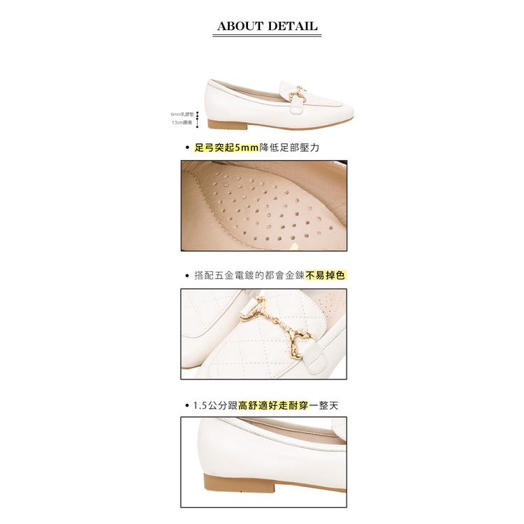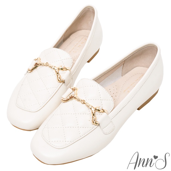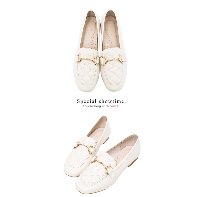 Ann’S小香風菱格紋-金色訂製扣全真皮小羊皮樂福鞋-白(版型偏大)