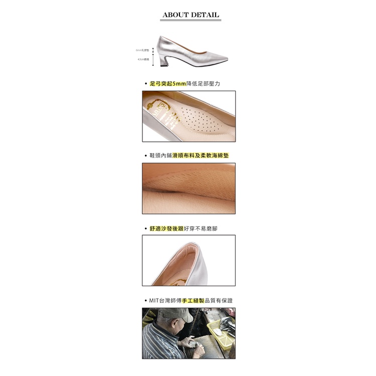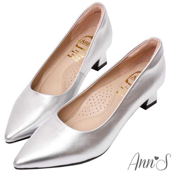 Ann’S平衡負擔-頂級綿羊皮性感尖頭粗跟包鞋4.5cm-銀