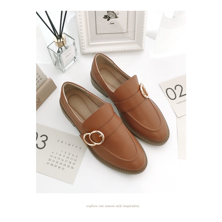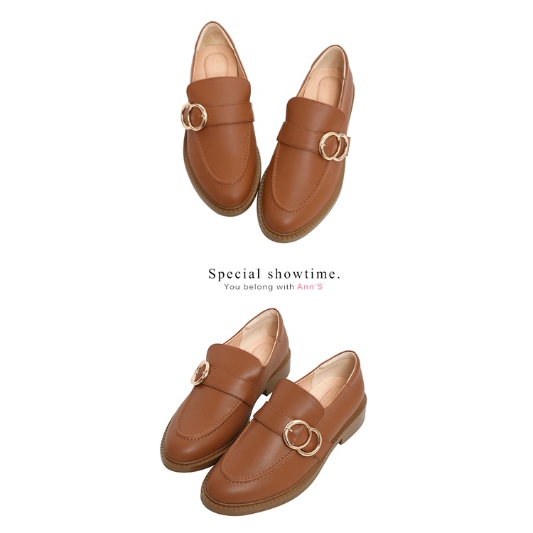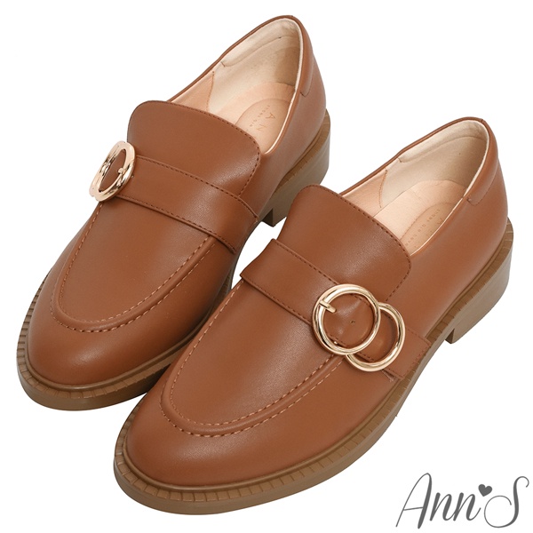 Ann’S肉肉腳必備-自由調節鬆緊金圓扣舒適樂福鞋3cm-棕