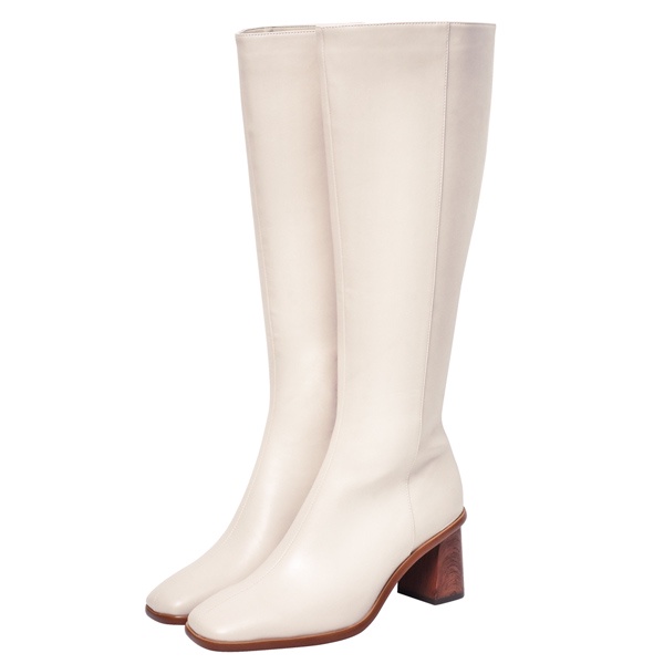 ANNSTAR彭彭PON聯名-時髦起來方頭粗跟好走及膝長靴6.5cm-米白