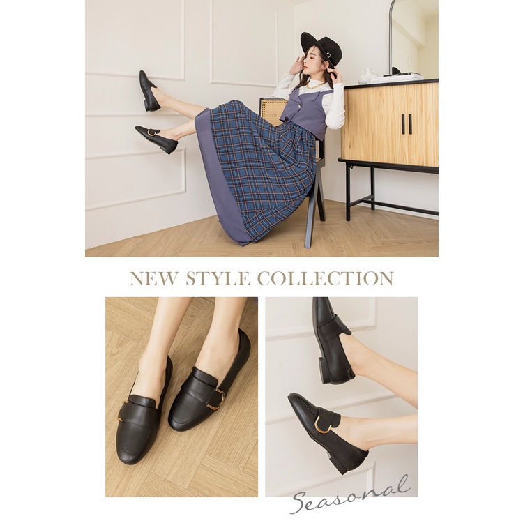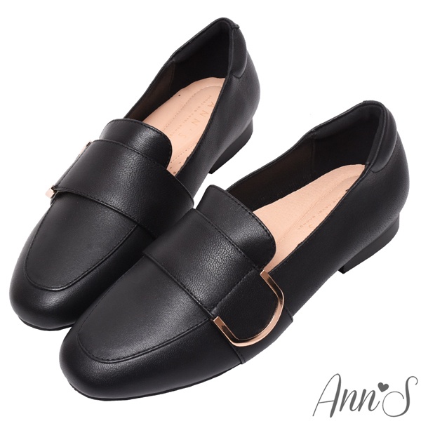 Ann’S堅持好穿-寬帶金色D扣全真皮小羊皮樂福鞋-黑