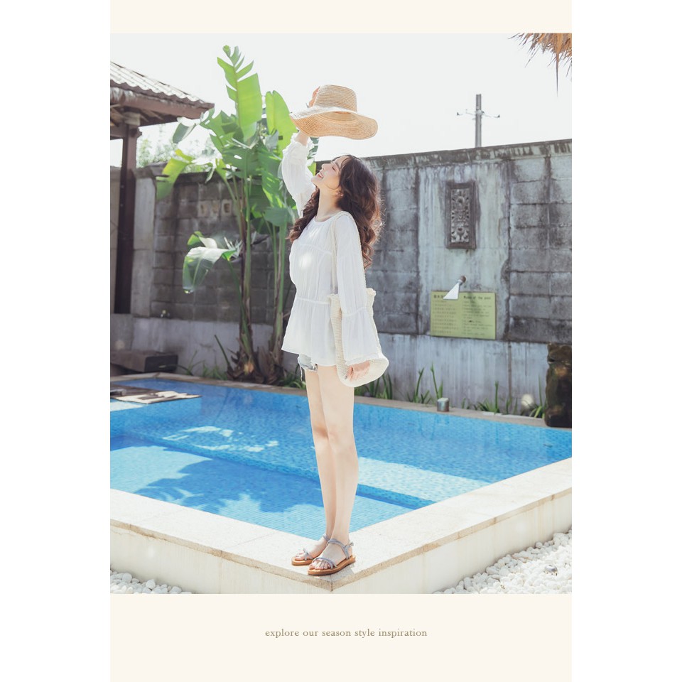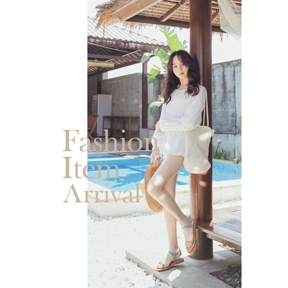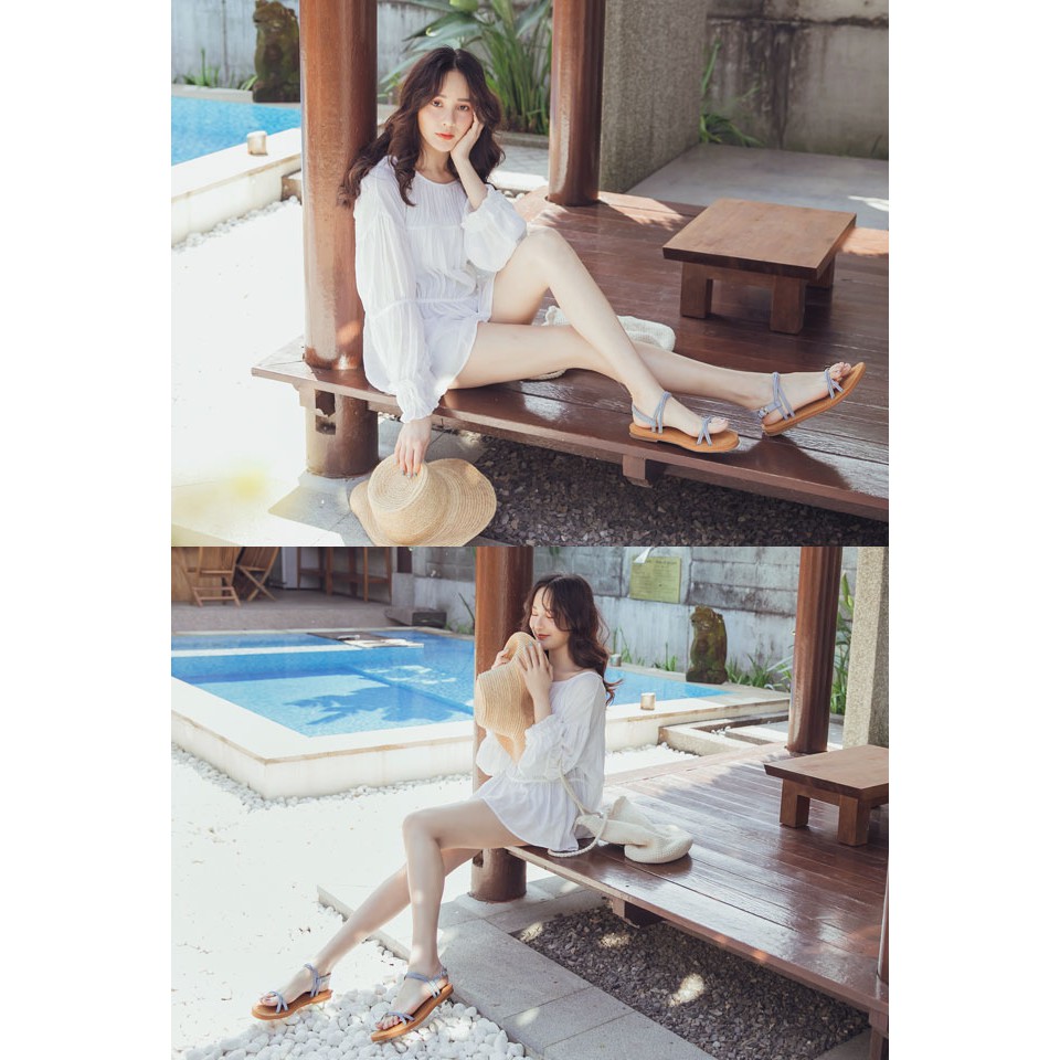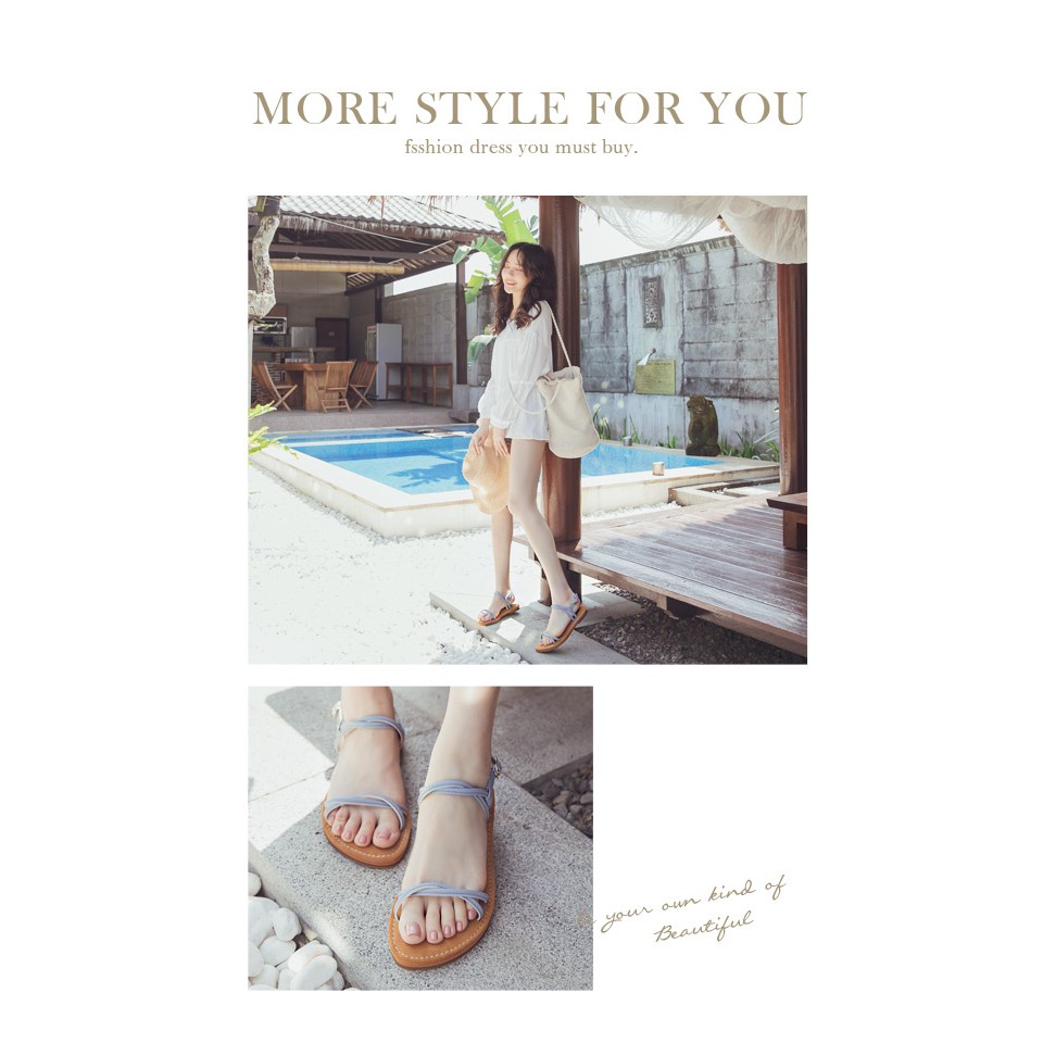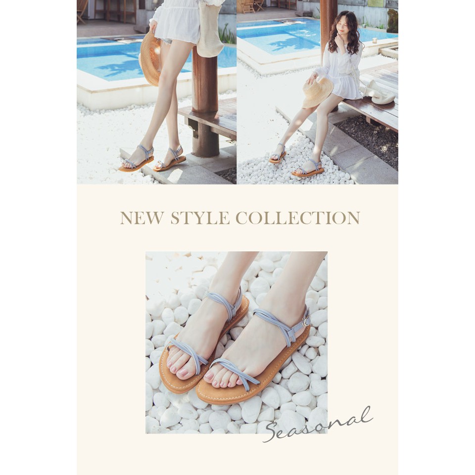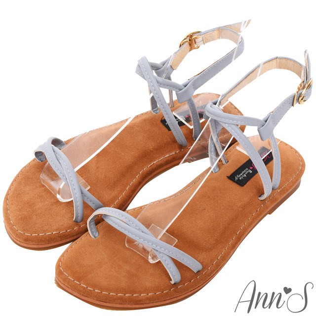 Ann’S 水洗牛皮-雙扭結寬版平底涼鞋-灰藍