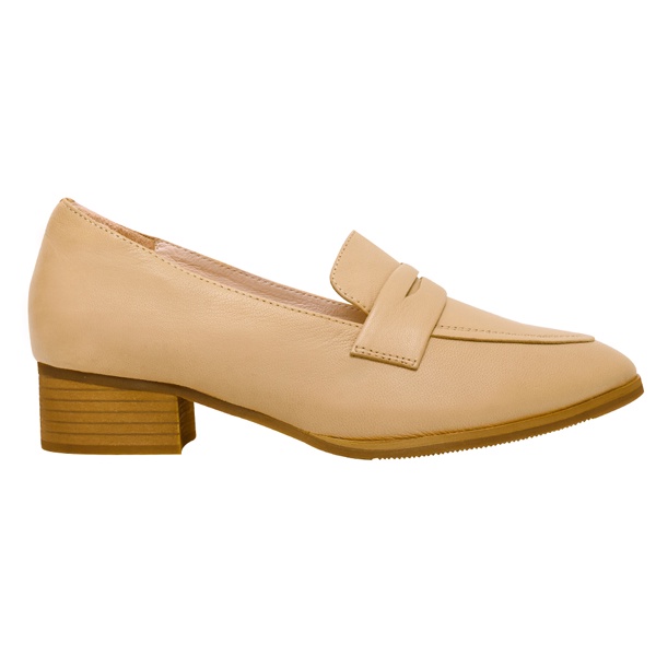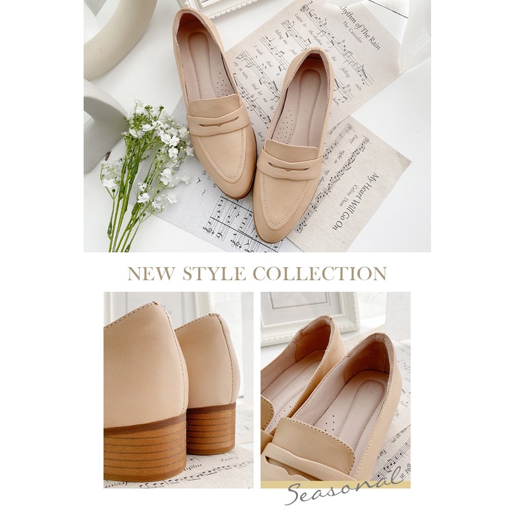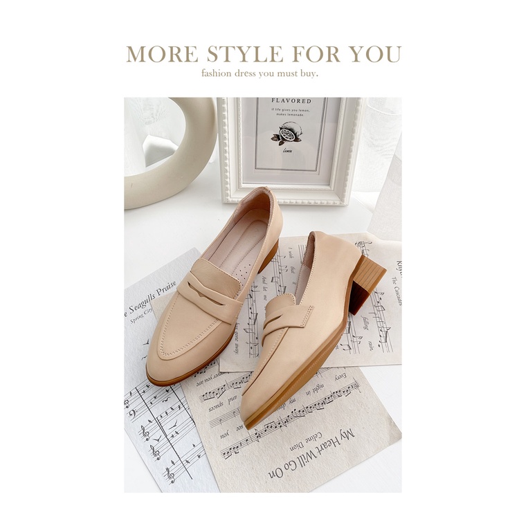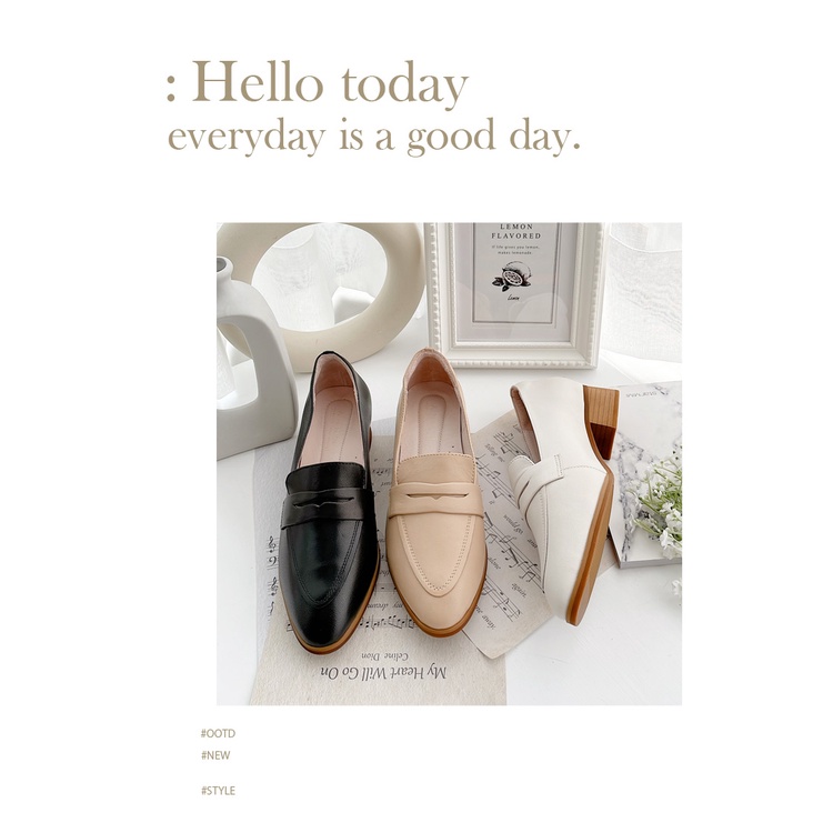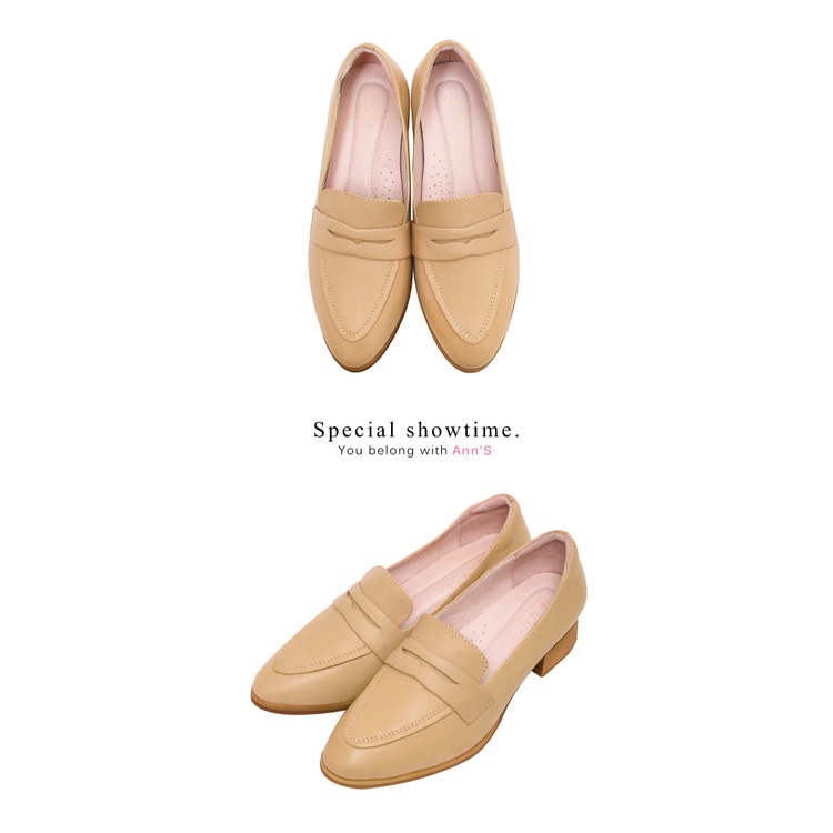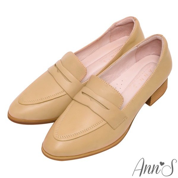 Ann’S氣質小文青-小羊皮全真皮素面木紋粗跟樂福鞋3.5cm-棕