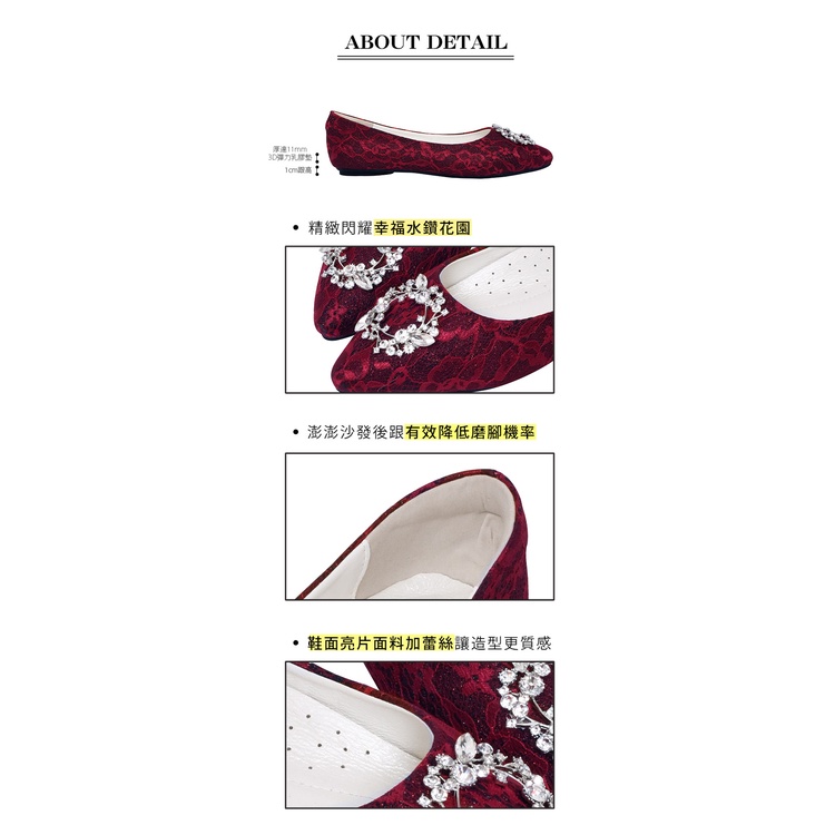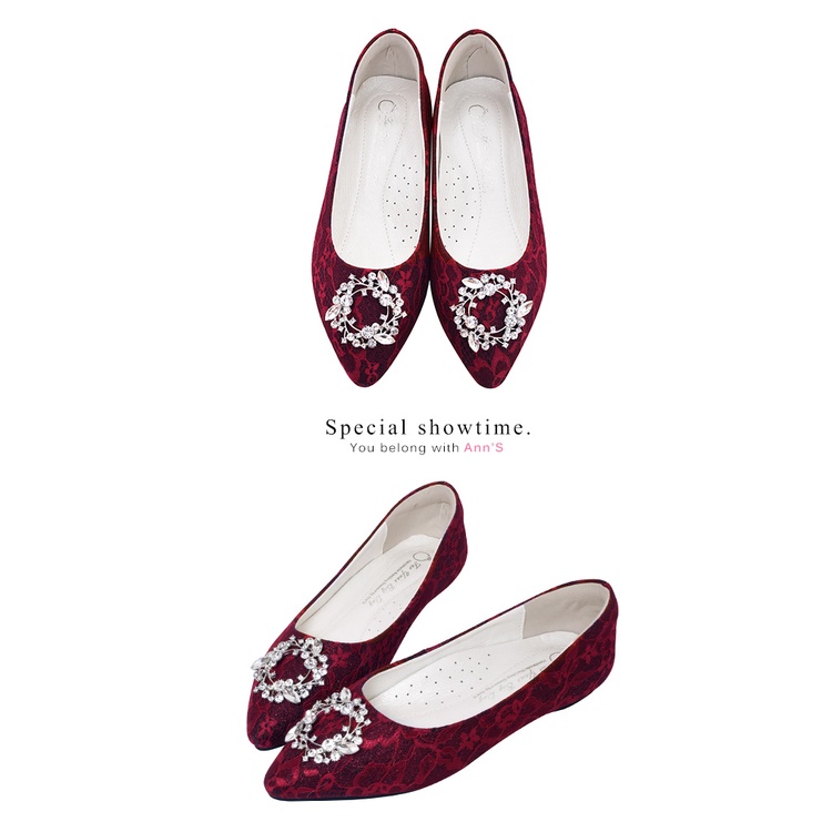 Ann’S祕密花園-白蕾絲鑽石花圈平底婚鞋-紅