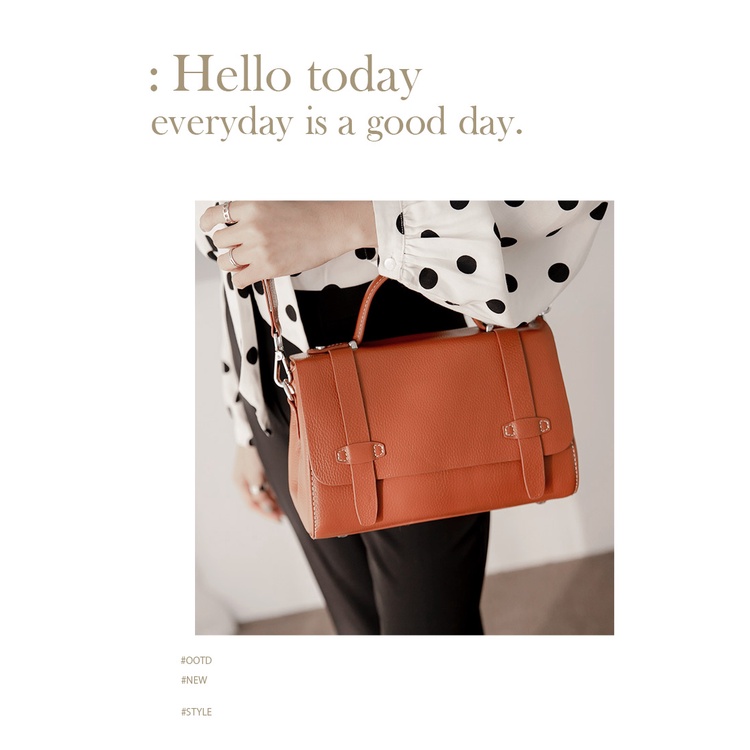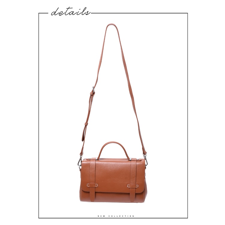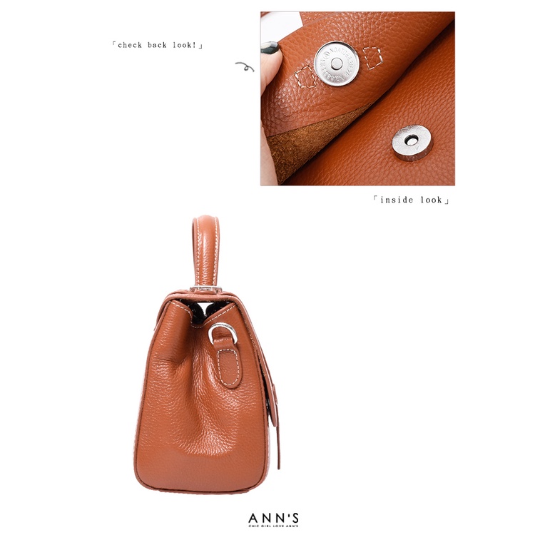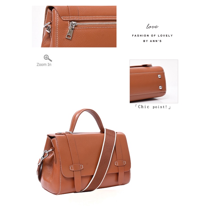 Ann’S附贈雙背帶-頂級牛皮全真皮手提肩背劍橋包-棕