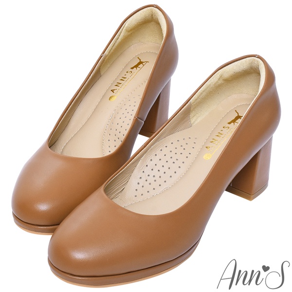 Ann’S通勤好走首選-頂級綿羊皮防水台圓頭粗跟鞋6cm-棕(版型偏小)