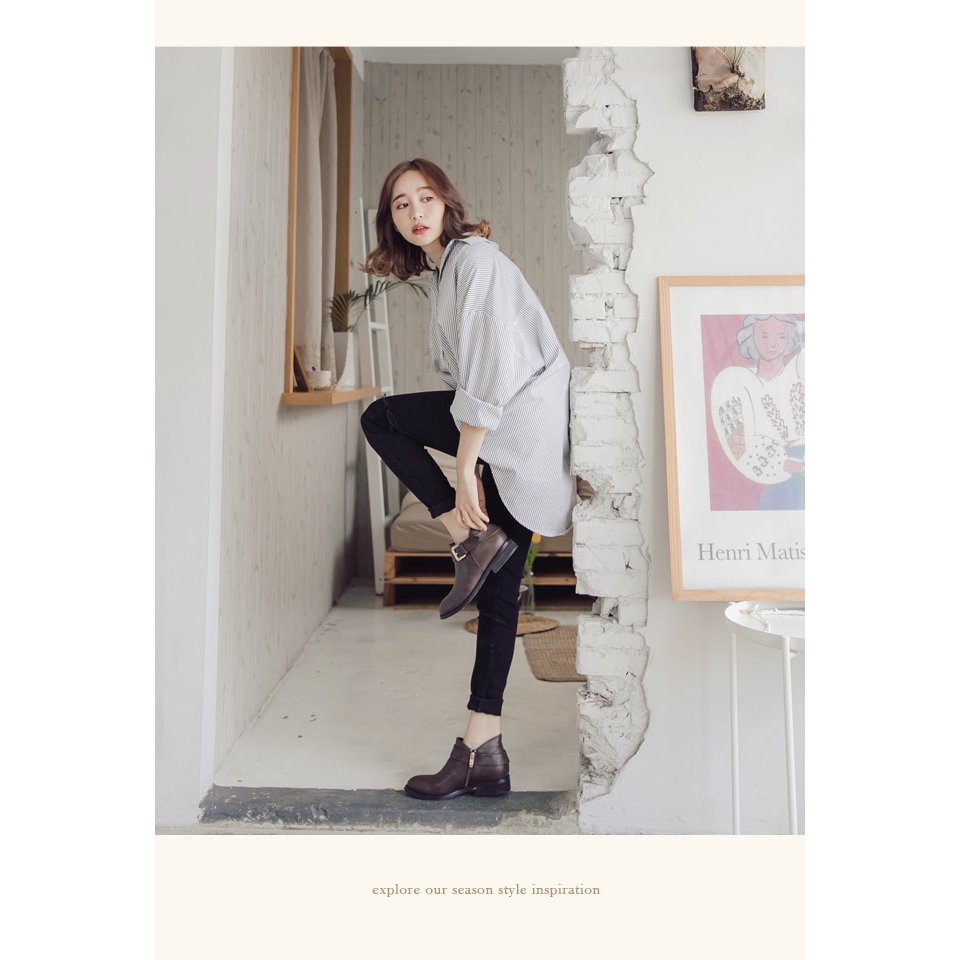 Ann’S實穿款-V弧型單扣帶平底短靴-咖