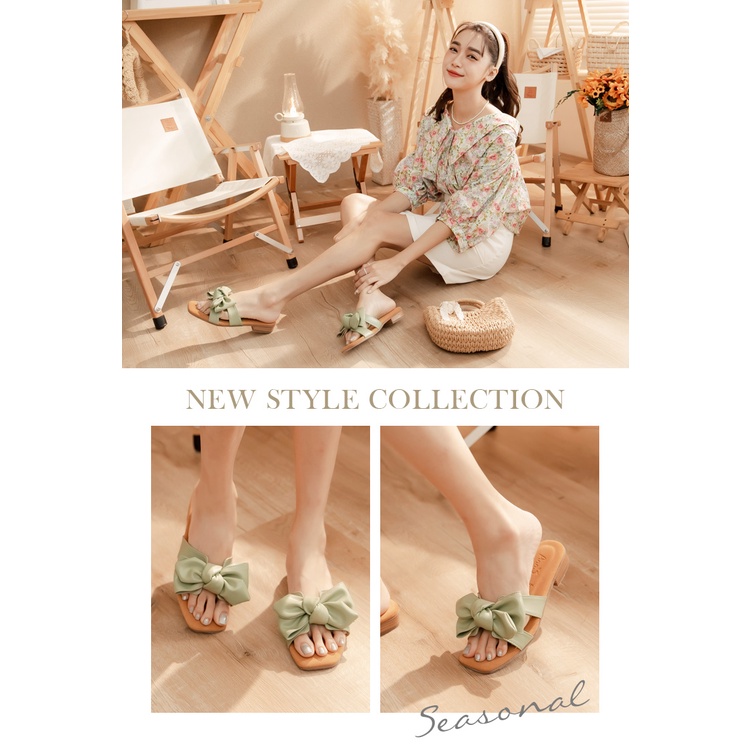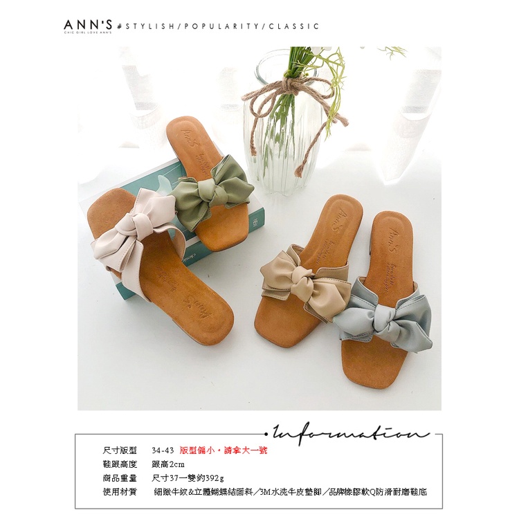 Ann’S水洗牛皮-立體大蝴蝶結木紋跟方頭涼鞋-綠(版型偏小)