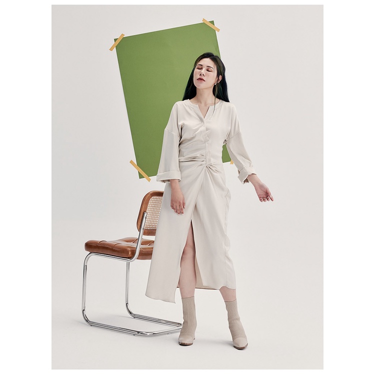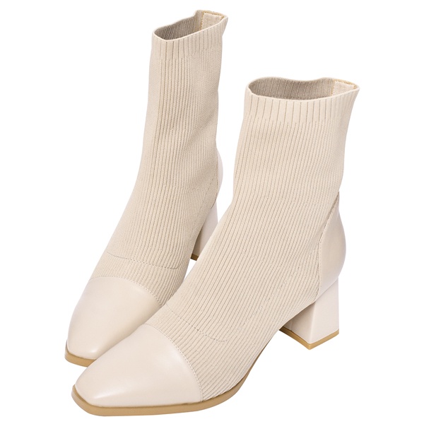 ANNSTAR丹妮婊姐聯名-異材質拼接貼腿飛織粗跟短靴6.5cm-杏灰(版型偏小)