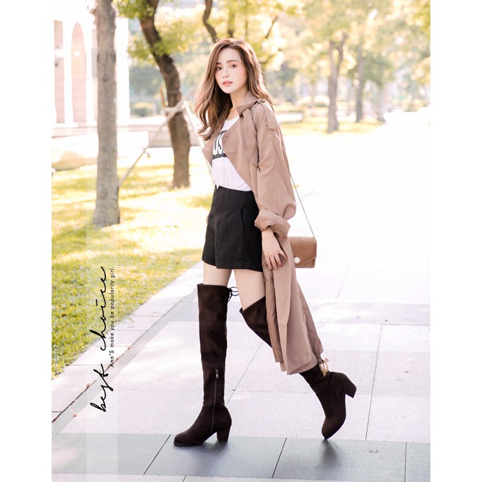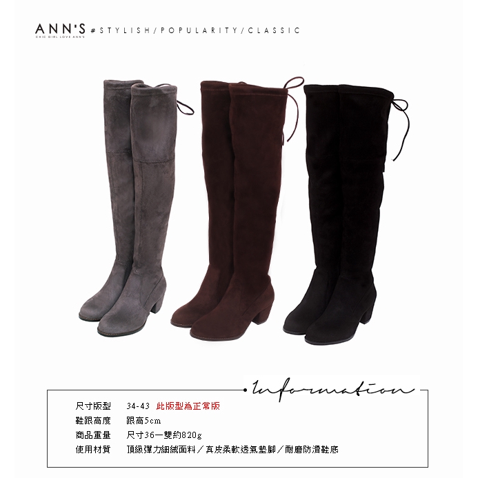 Ann’S正常版-名模後蝴蝶結側拉鍊貼腿過膝靴-細絨咖