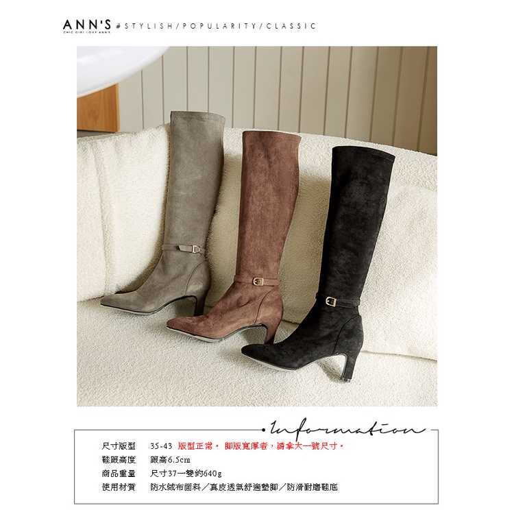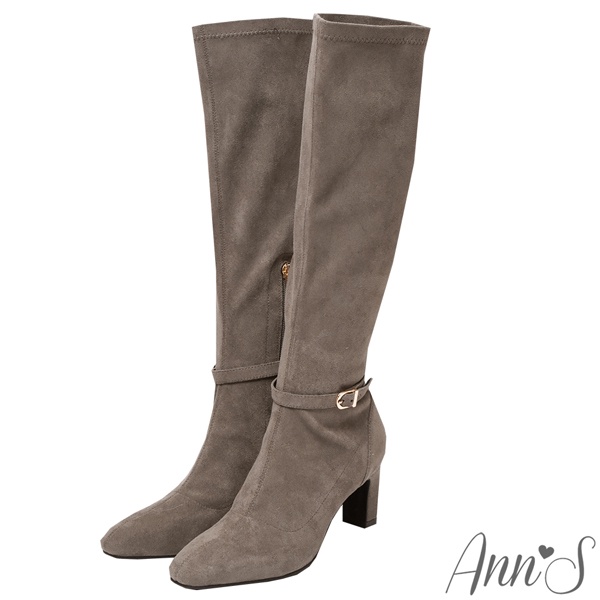Ann’S精緻美感寬版-防水絨布可拆繫帶兩穿扁跟及膝長靴6.5cm-灰