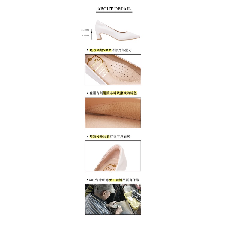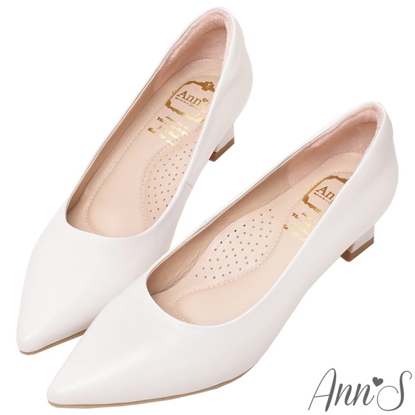 Ann’S平衡負擔-頂級綿羊皮性感尖頭粗跟包鞋4.5cm-白