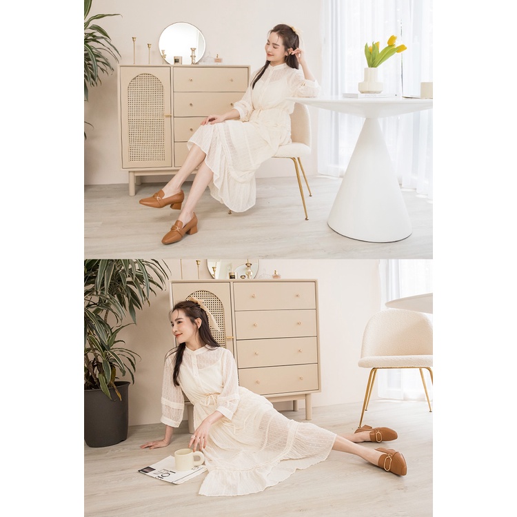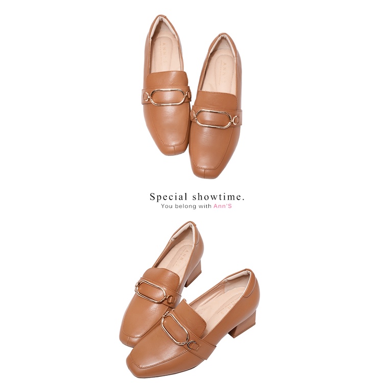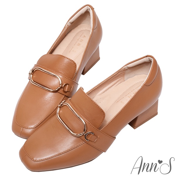 Ann’S文藝養成-金環全真皮小羊皮方頭粗跟樂福鞋5cm-棕(版型偏大)