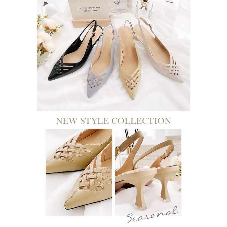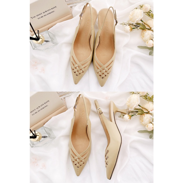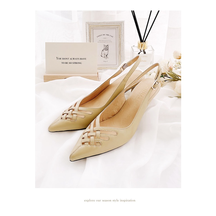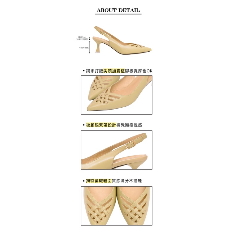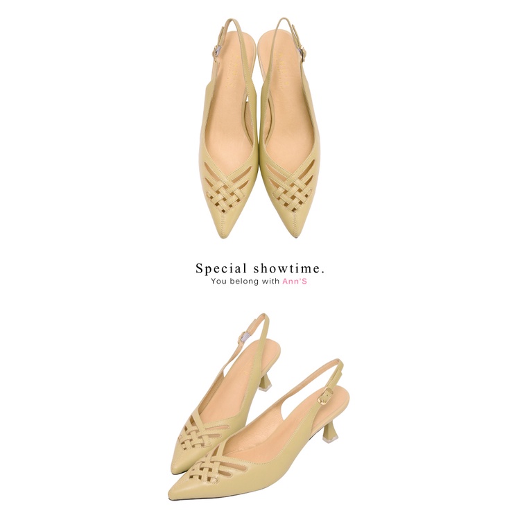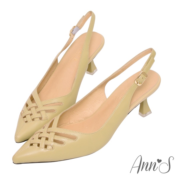 Ann’S編織精品-綿羊皮V口拉帶尖頭酒杯跟鞋6.5cm-杏