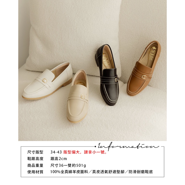 Ann’S手工縫製粗線金釦綿羊皮全真皮平底樂福鞋-棕(版型偏大)