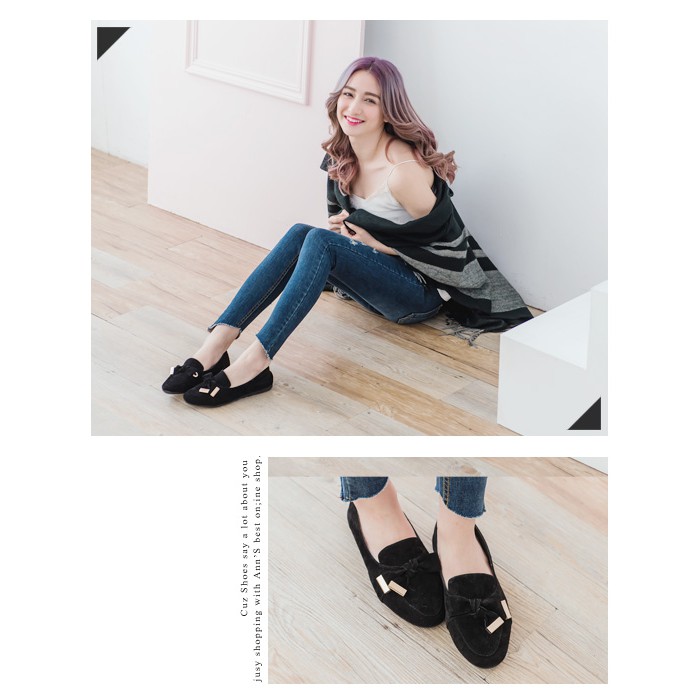 Ann’S不磨腳系列全真皮蝴蝶結樂福懶人鞋-黑