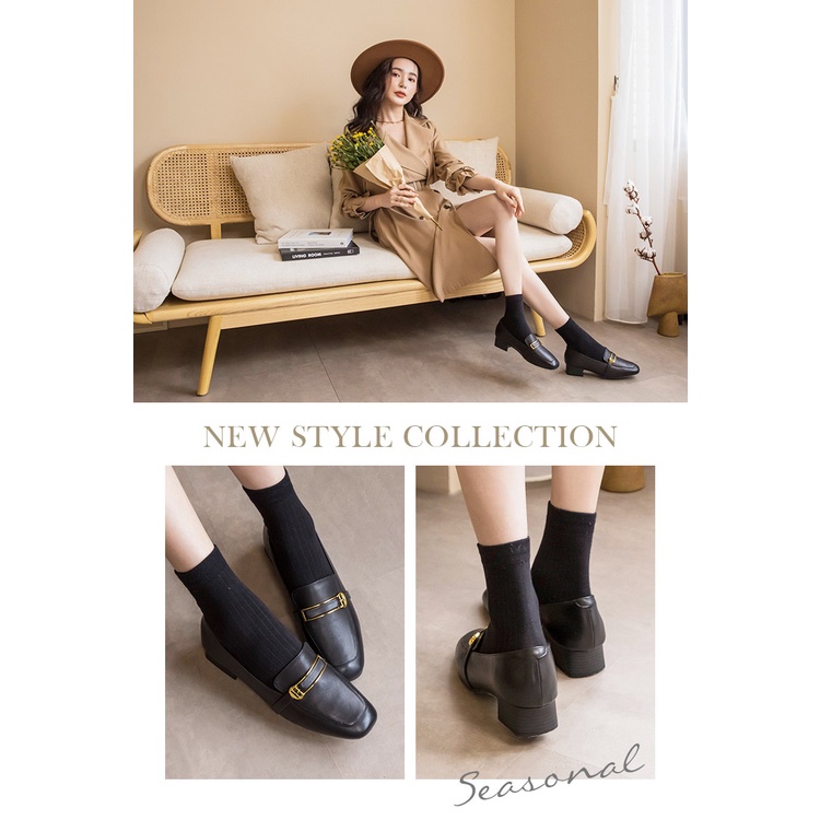 Ann’S金色長扣帶全真皮小羊皮粗跟樂福鞋3.5cm-黑(版型偏大)