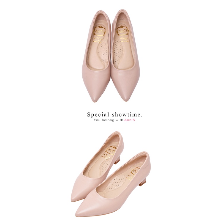 Ann’S平衡負擔-頂級綿羊皮性感尖頭粗跟包鞋4.5cm-杏