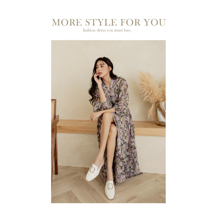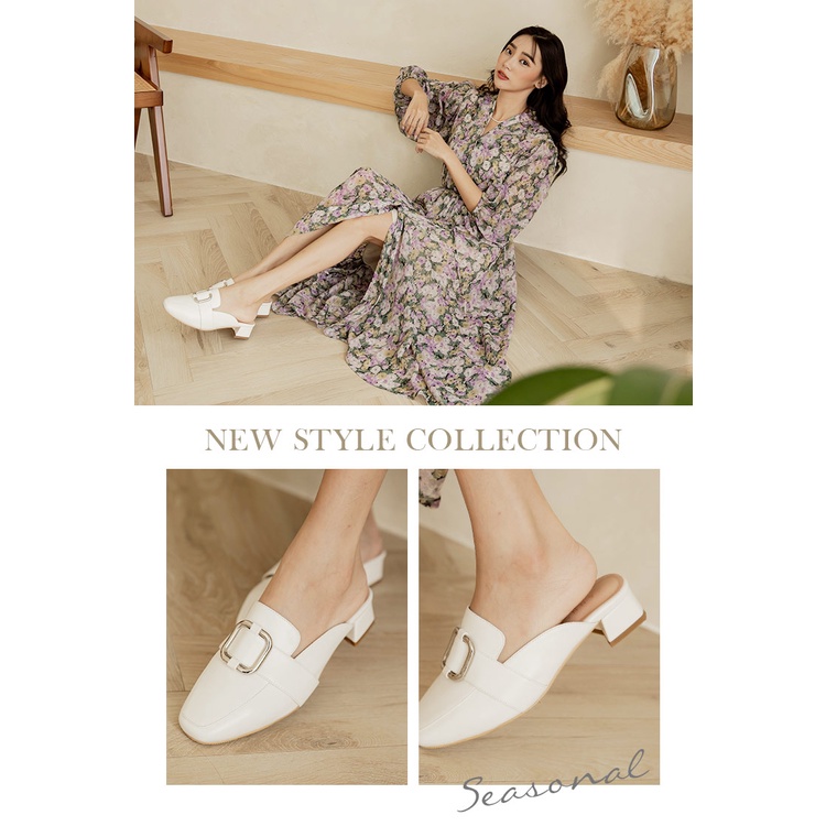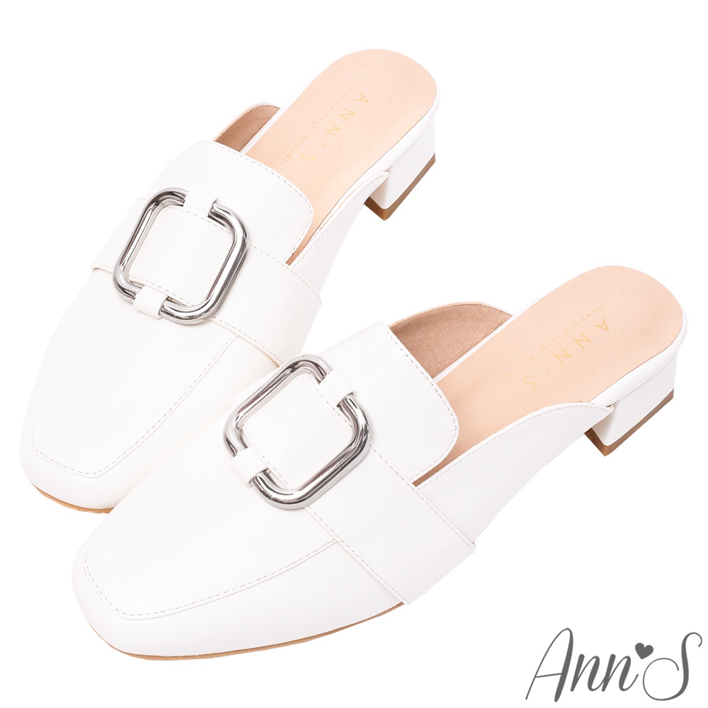 Ann’S生活常態-正方扣粗跟方頭穆勒鞋3cm-米白(版型偏小)