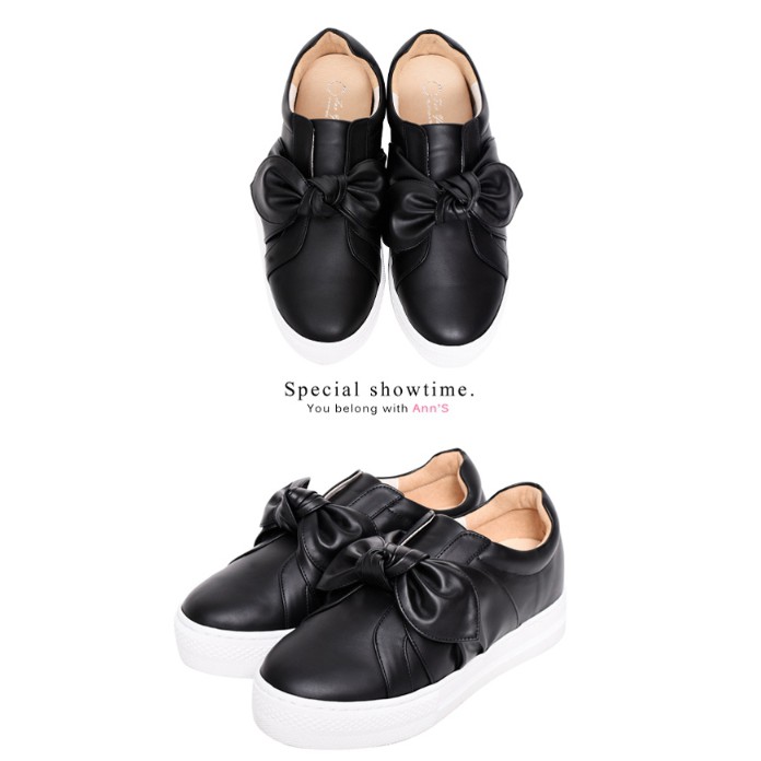 Ann’S可愛女人-蝴蝶結扭結內增高休閒懶人鞋-黑