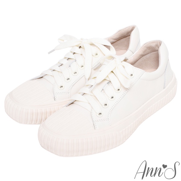 Ann’S一場輕旅行-全真皮綁帶方頭餅乾休閒鞋-白(版型偏小)