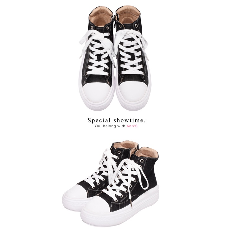 Ann’S黑科技-弄不髒防潑水厚底高筒拉鍊帆布鞋3.5cm-牛仔黑
