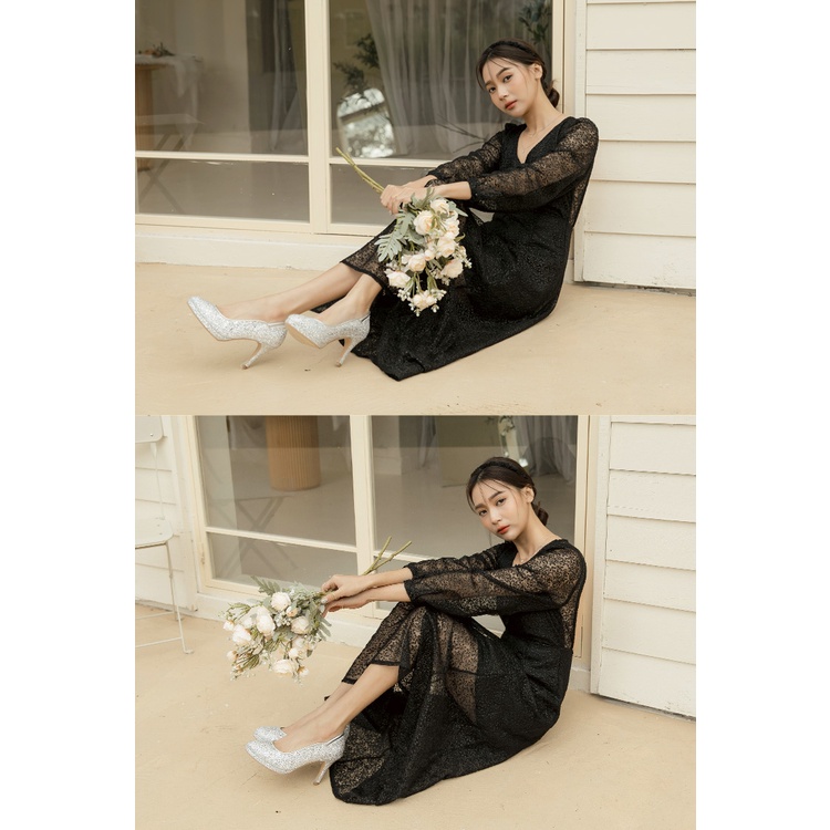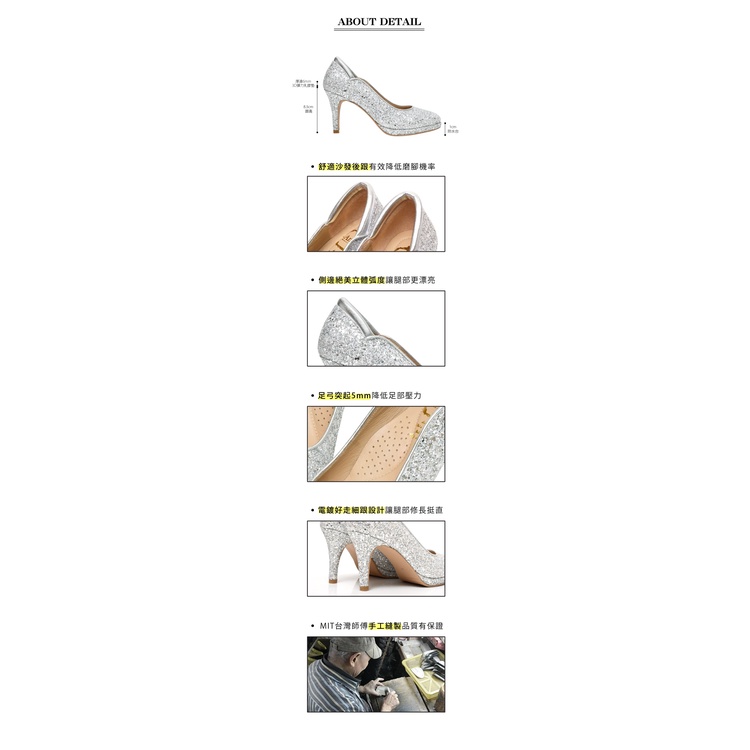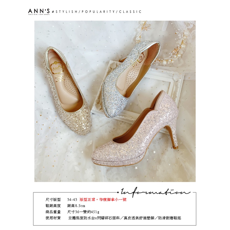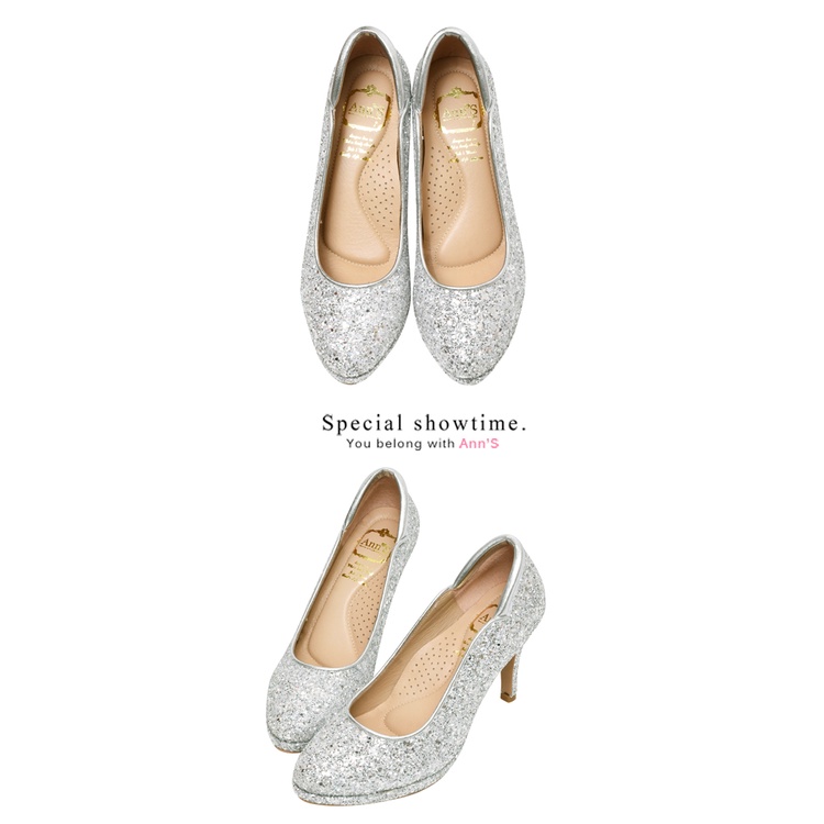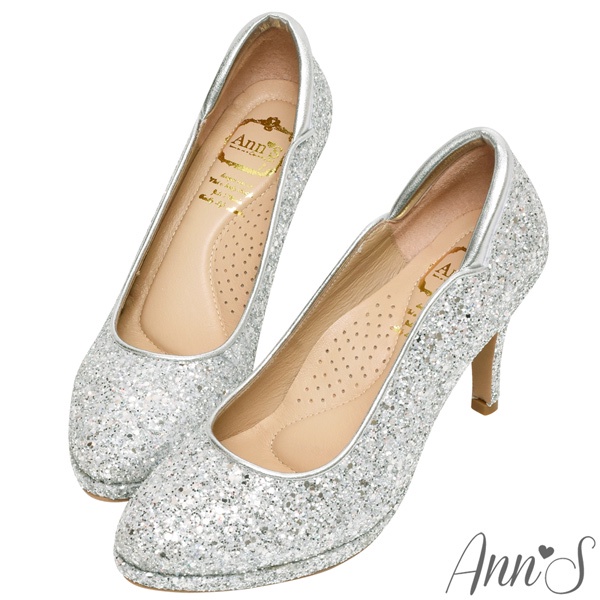 Ann’S絕美弧度-爆閃碎石防水台圓頭高跟婚鞋8.5cm-銀