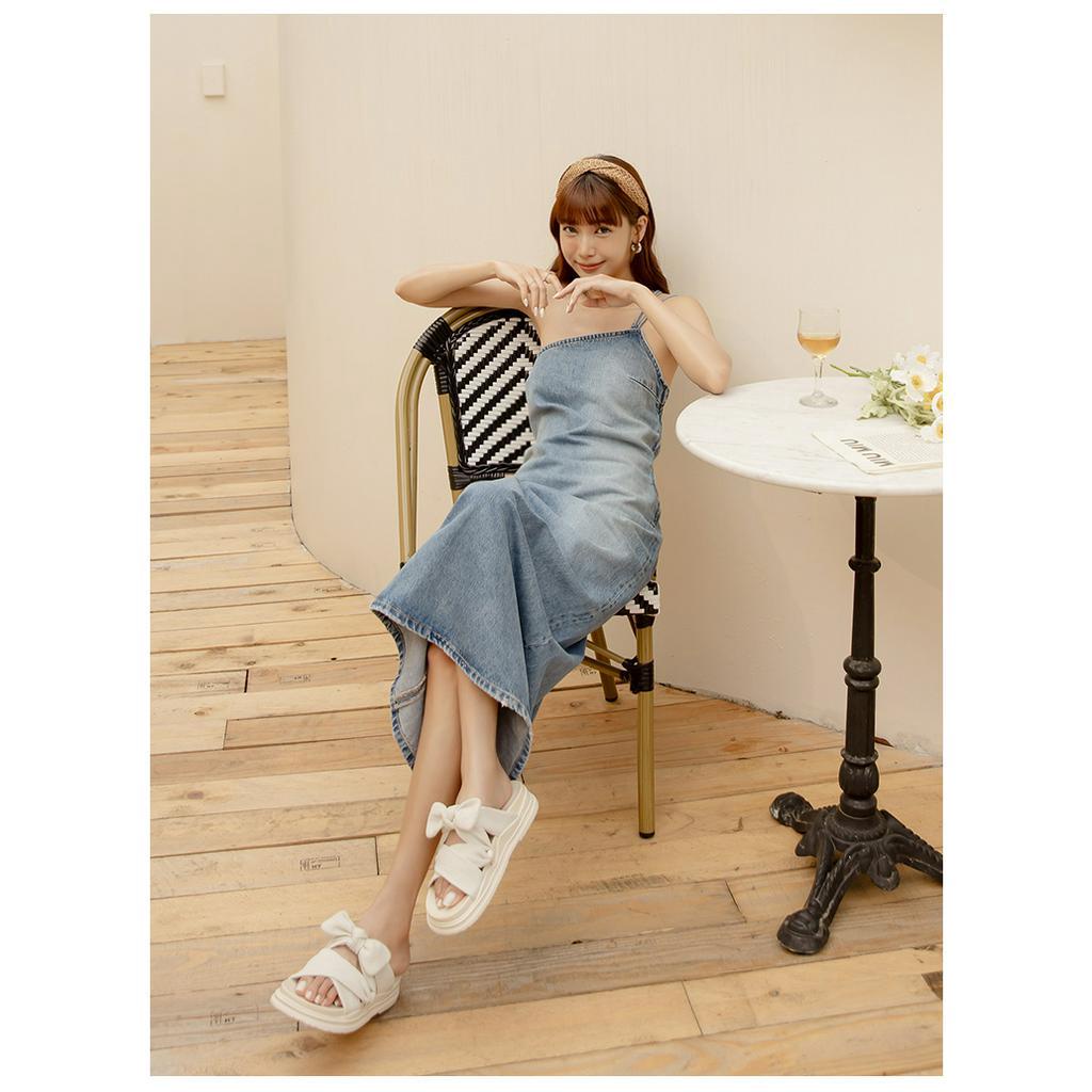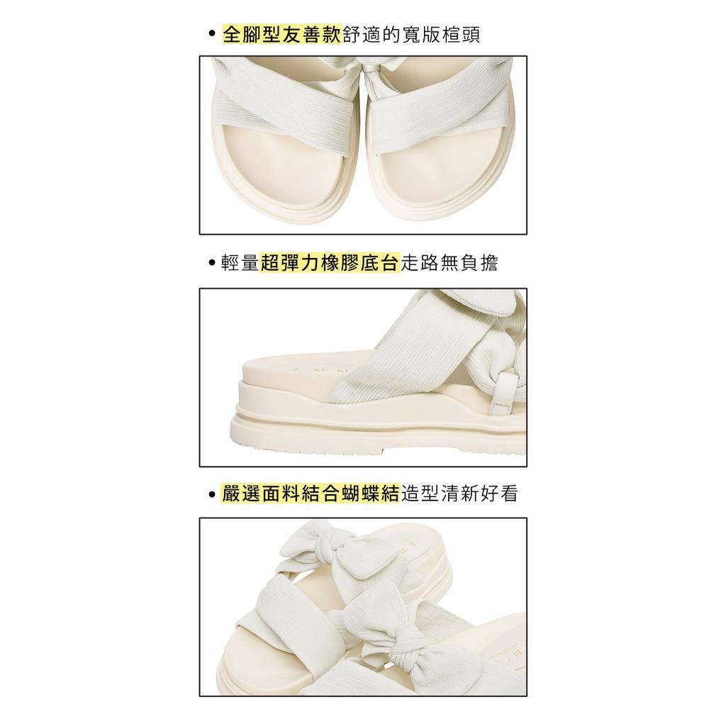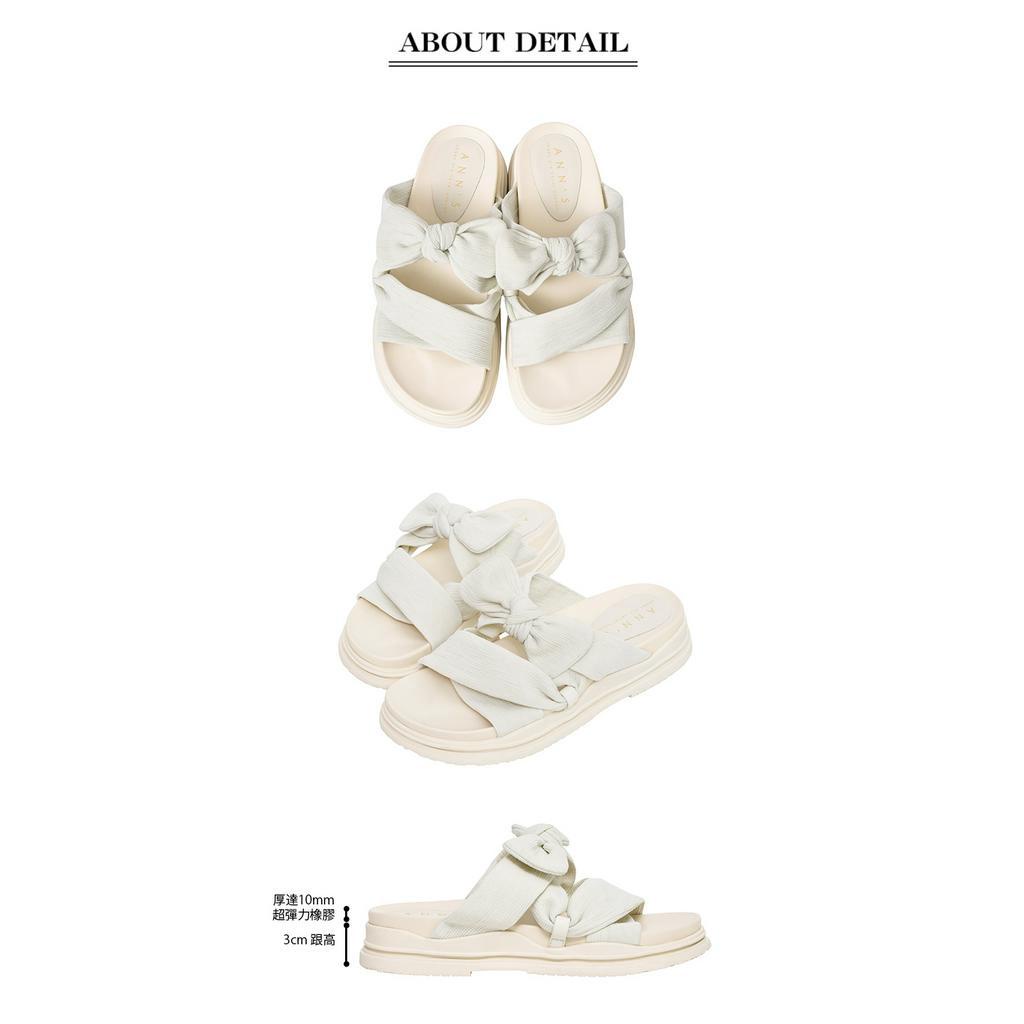 Ann’S大推寬肉水腫腳!柔軟大蝴蝶結-升級彈力厚底涼拖鞋4cm-白