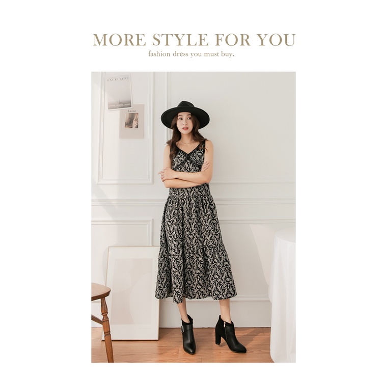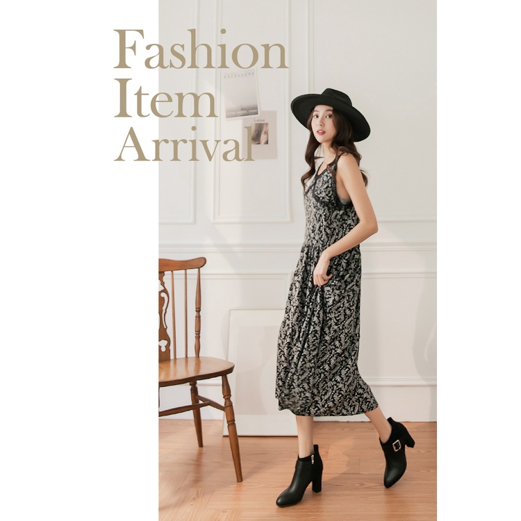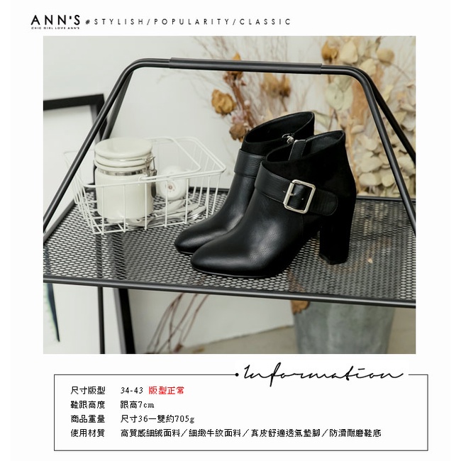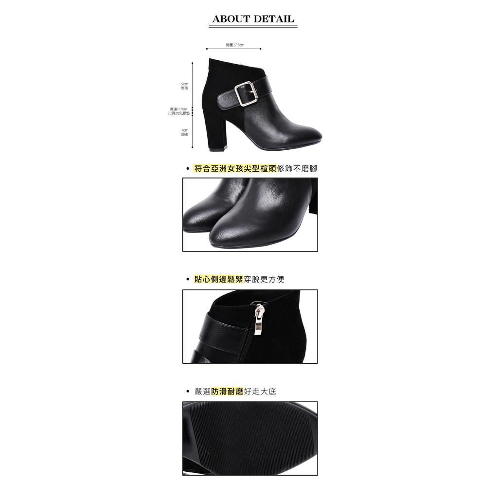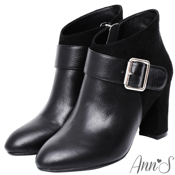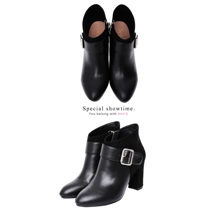 Ann’S技巧女人味-拼接銀方扣斜口粗跟短靴