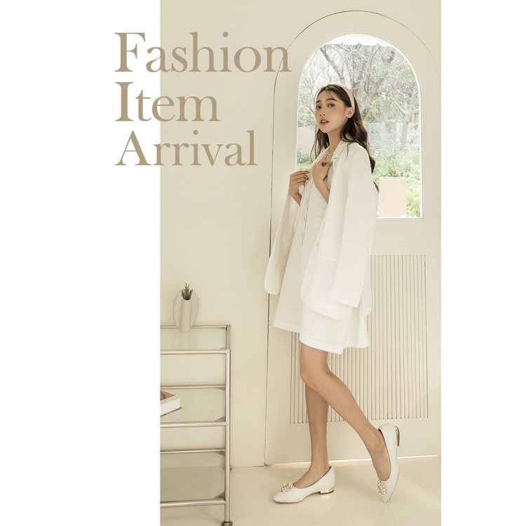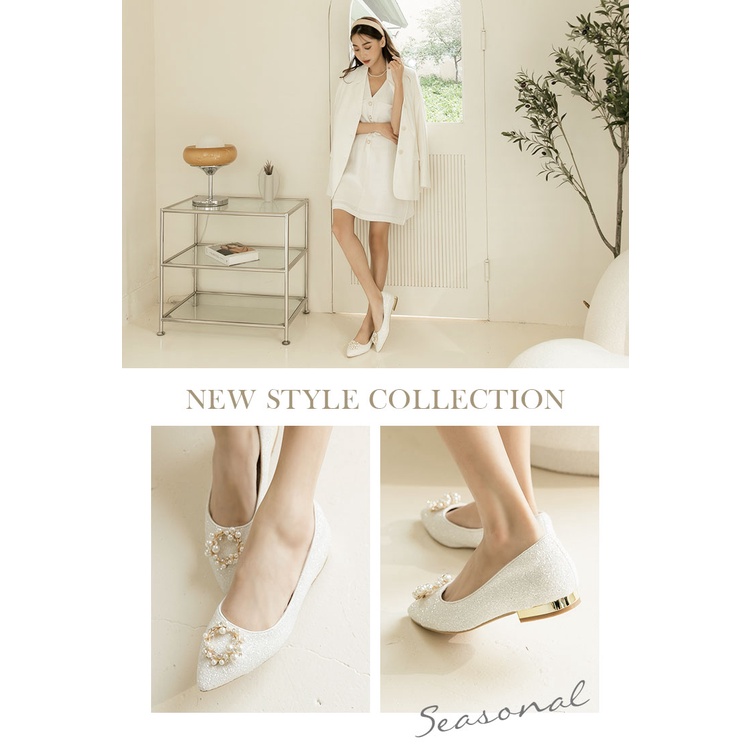 Ann’S愛情絮語-金色珍珠花圈碎石閃耀平底婚鞋-白