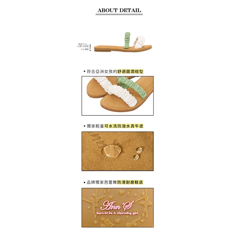 Ann’S水洗牛皮-雙色抓皺寬腳友善圓頭涼鞋-綠(版型偏小)
