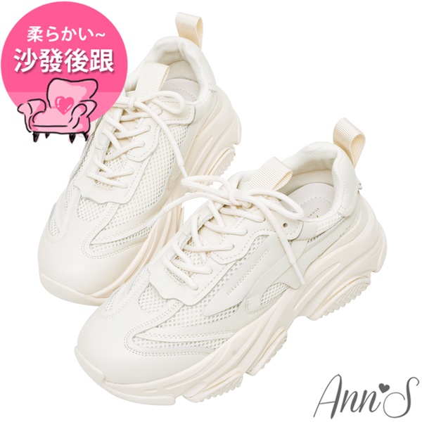 Ann’S魔術第四代-燕麥奶全真皮牛皮輕量老爹鞋4.5cm