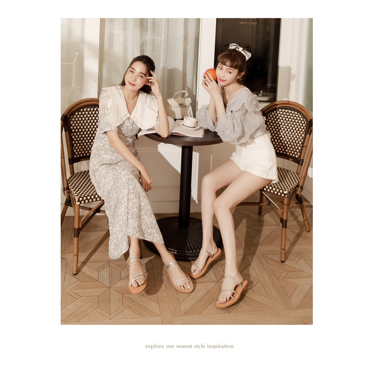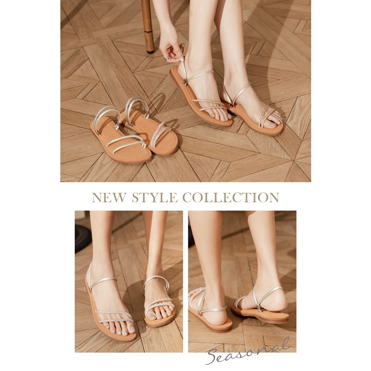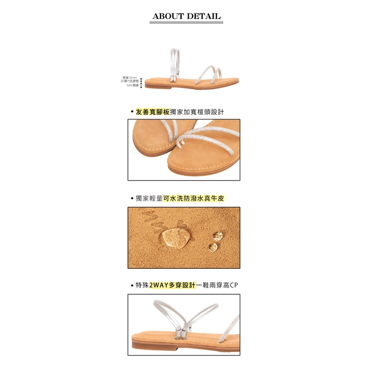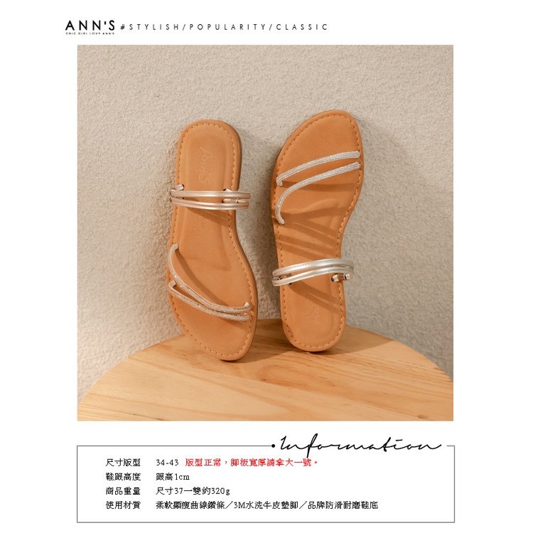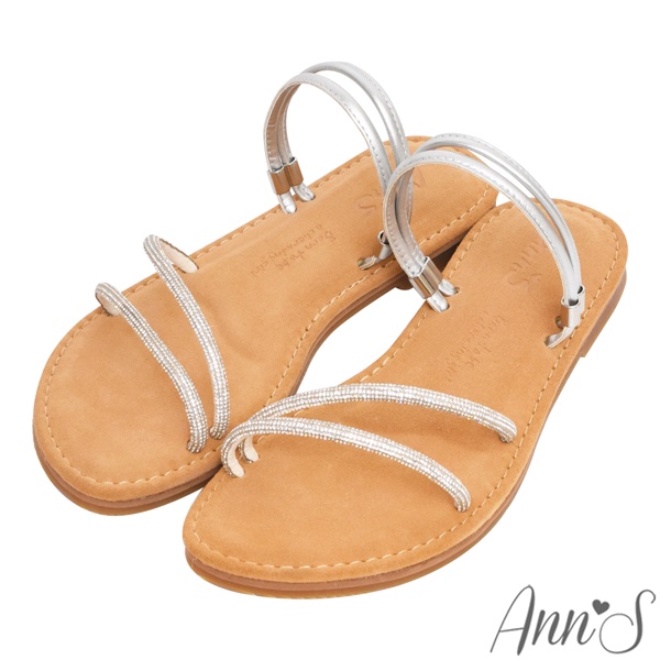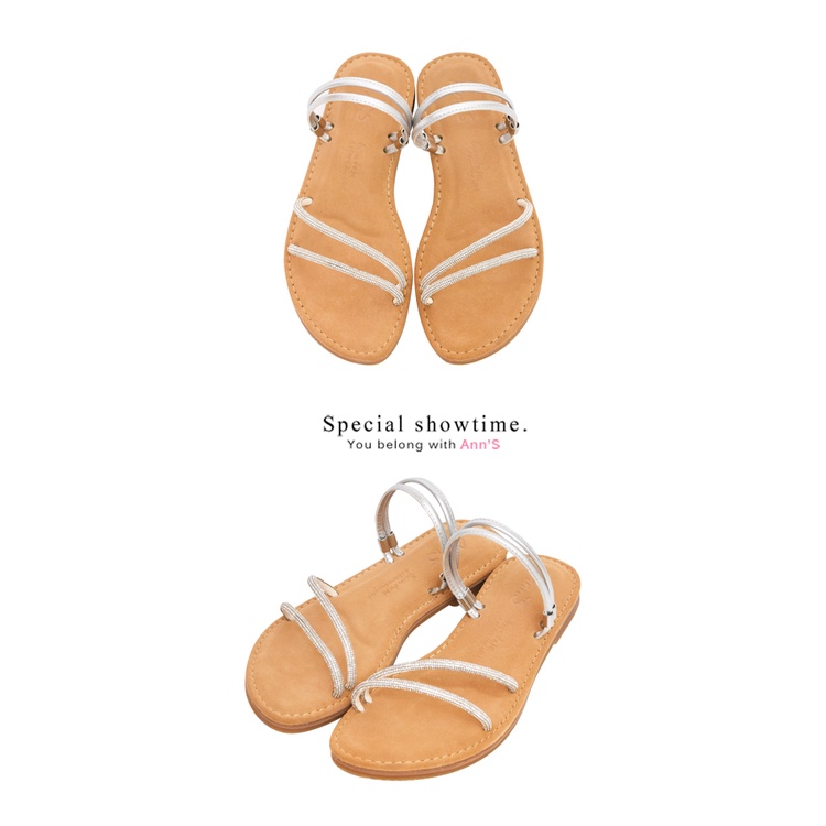 Ann’S水洗牛皮-一字細鑽兩穿圓頭涼鞋-銀