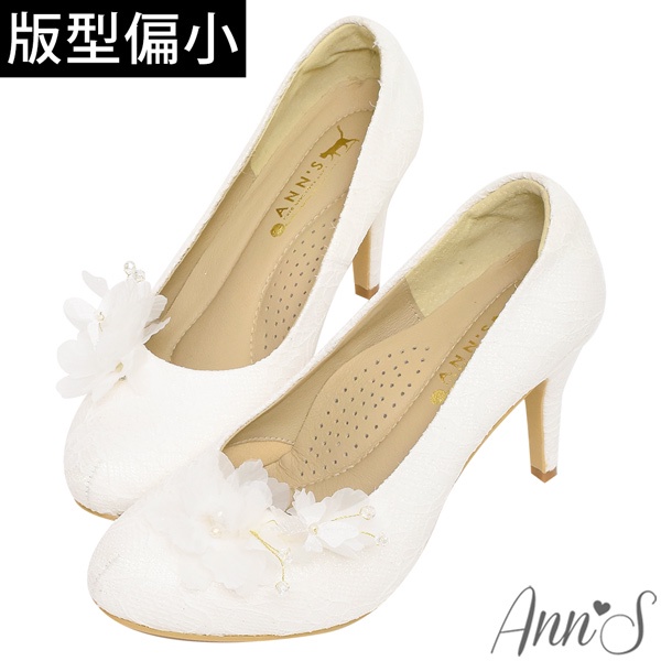 Ann’S浪漫花園-手工立體花朵白蕾絲防水台圓頭婚鞋-9cm-白(版型偏小)