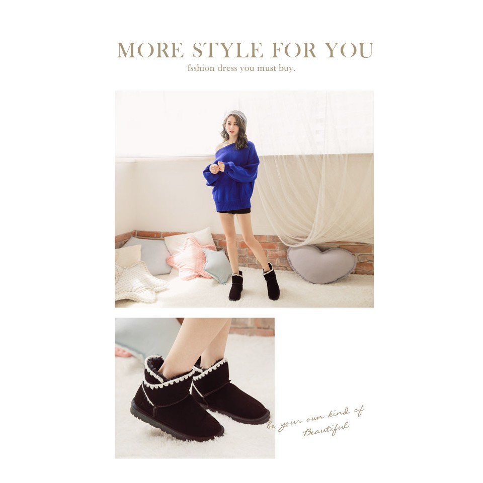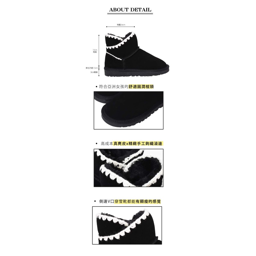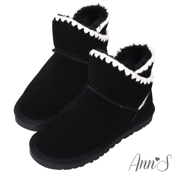 Ann’S可愛毛線-側V編織滾邊短筒真皮雪靴-黑