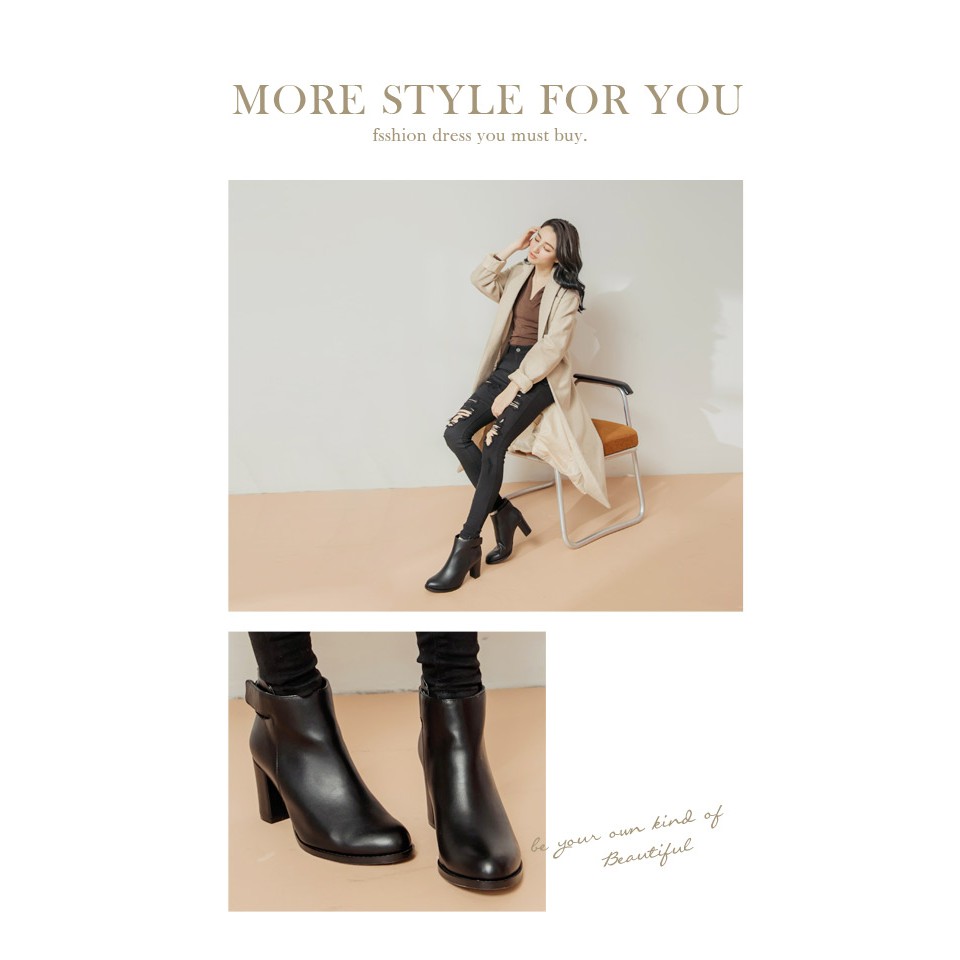 Ann’S比例平衡點-激瘦魔鬼氈粗跟素面高跟短靴