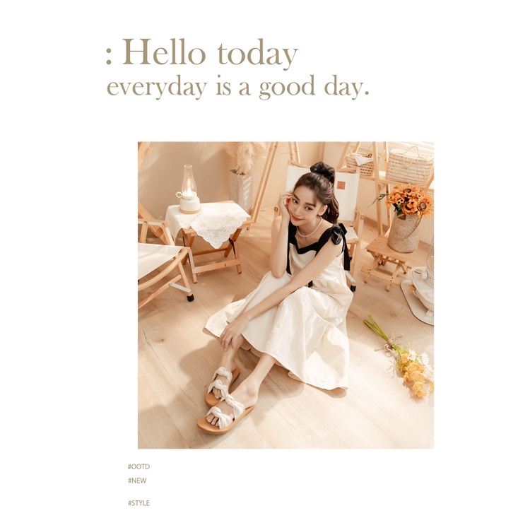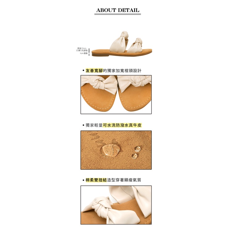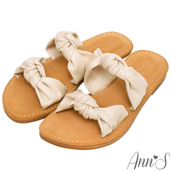 Ann’S水洗牛皮-棉柔雙蝴蝶結圓頭平底涼拖鞋-米