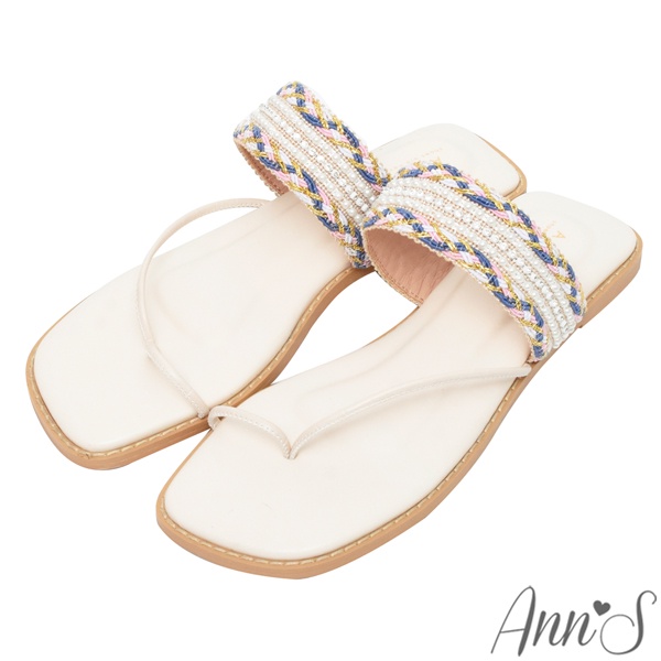 Ann’S度假訂製編織夾腳方頭平底涼拖鞋-紫(版型偏小)