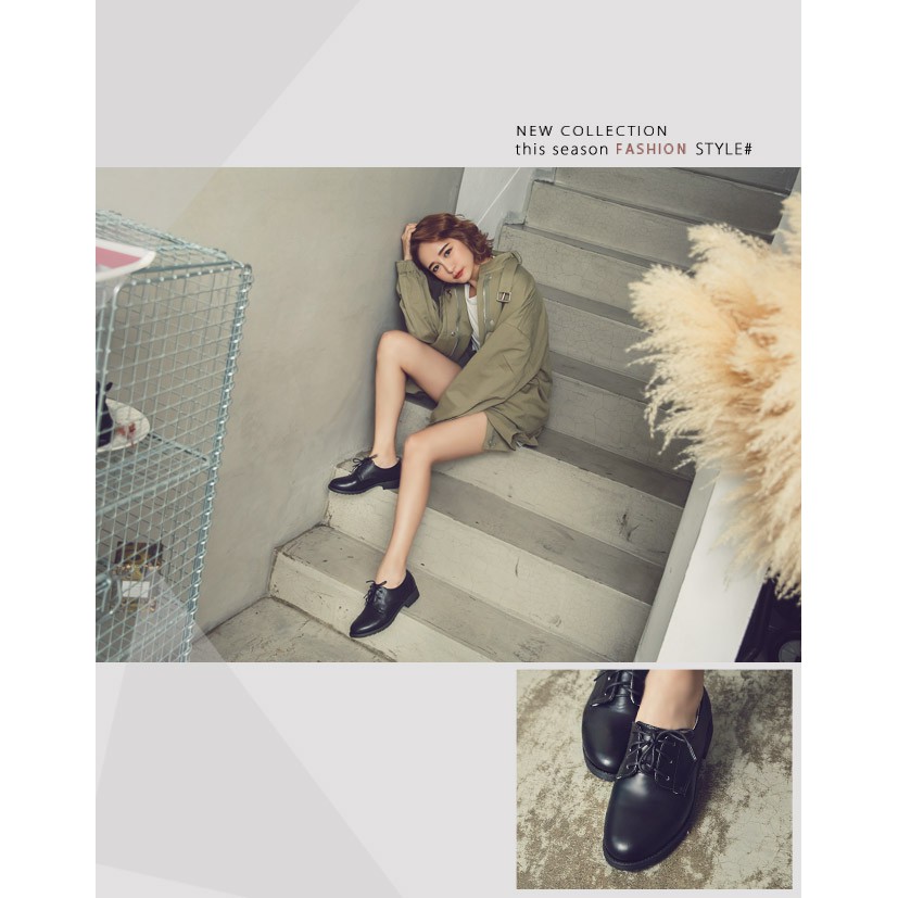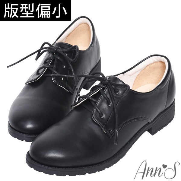 Ann’S學院氛圍-素色QQ軟底綁帶平底牛津鞋-黑