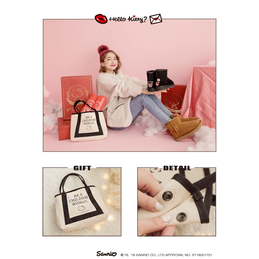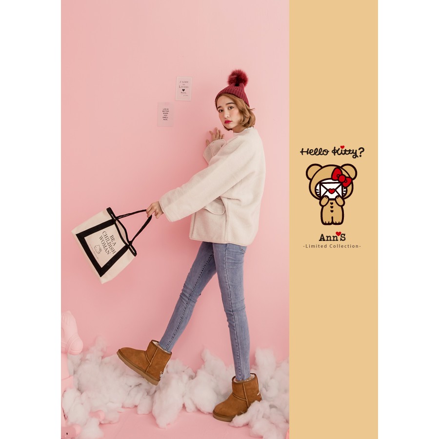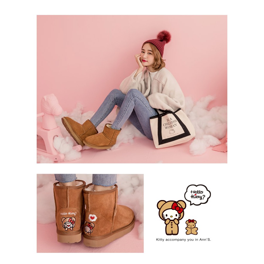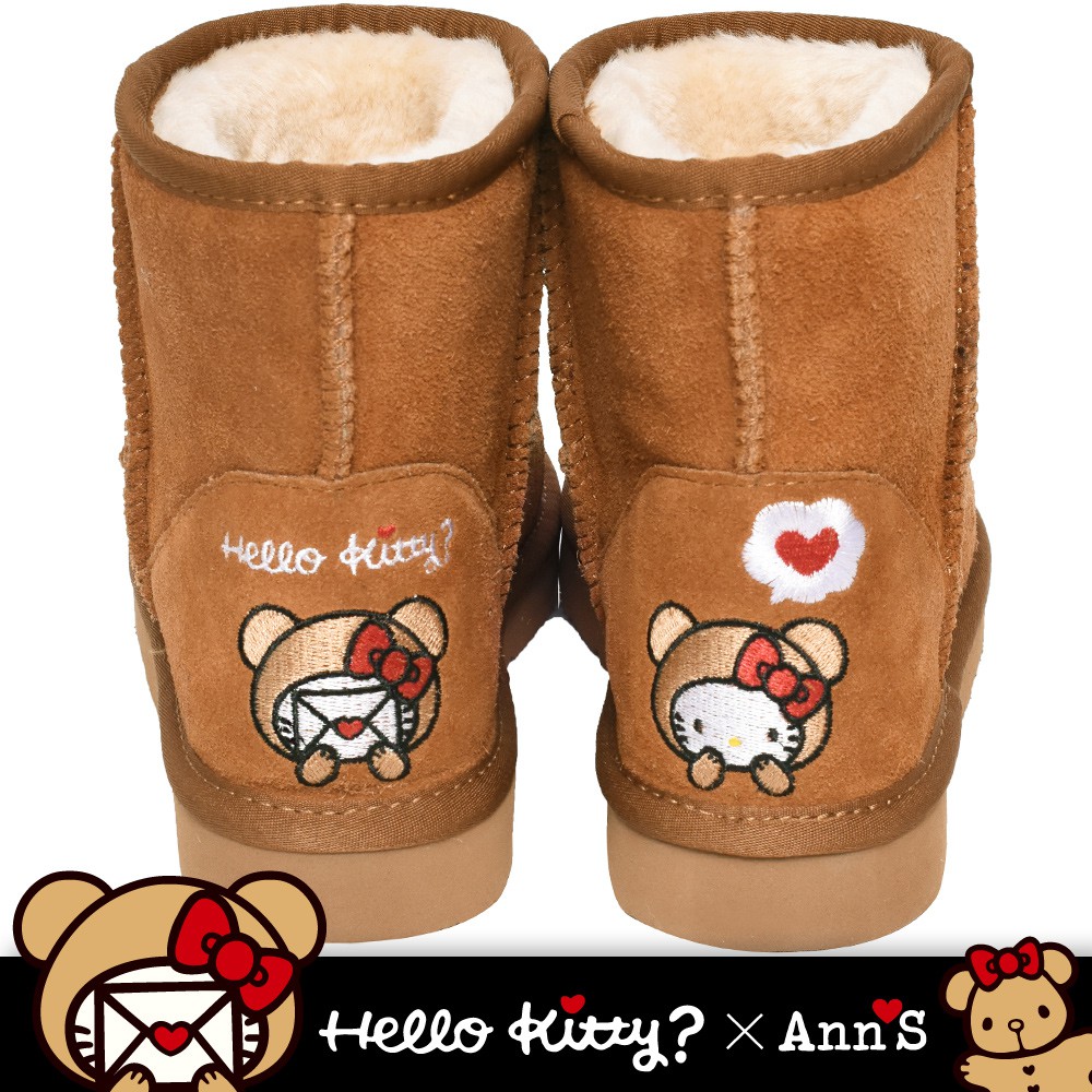 HELLO KITTY X Ann’S棕色熊熊精密彩色刺繡超短筒麂皮雪靴-棕