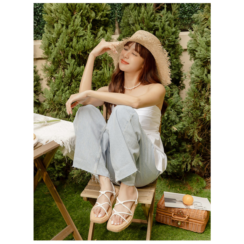 Ann’S水洗牛皮-3.5cm小心機厚底!「柔軟皮革雙層扭結包」軟木方頭涼鞋-白