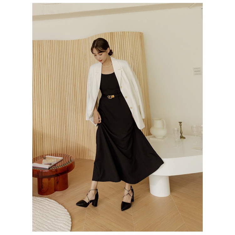 Ann’S腳背X鑽石條粗跟尖頭鞋-5.5cm-黑