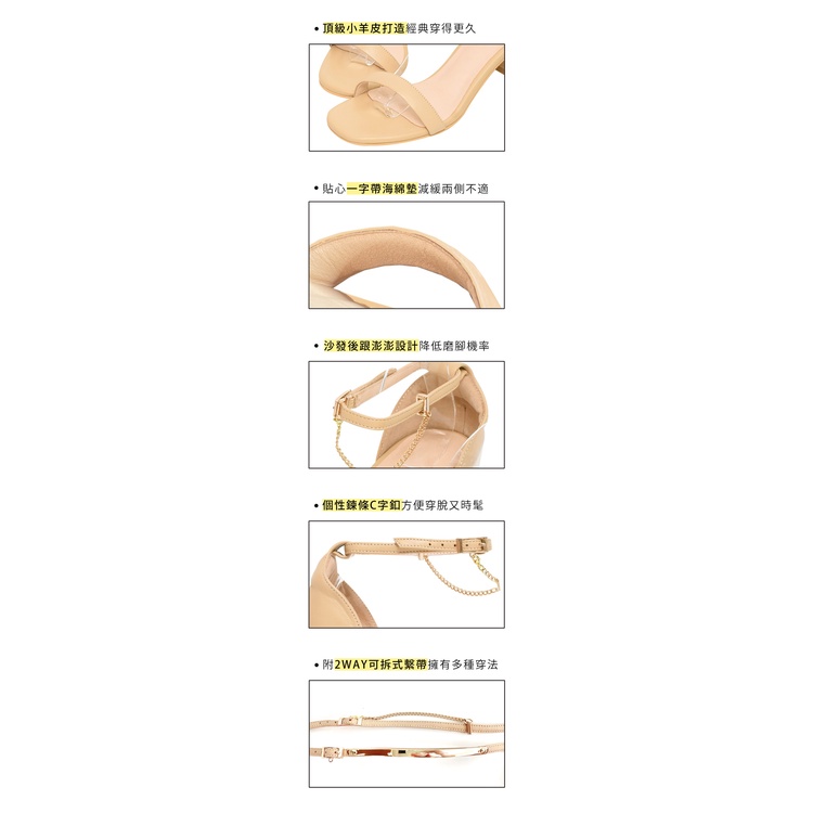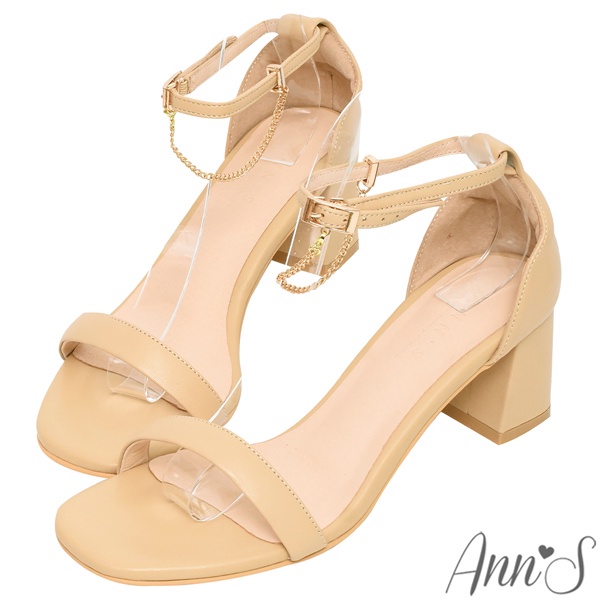 Ann’S升級小羊皮2.0-不踩雷美腿製造機一字帶涼鞋-細帶6公分中跟-杏